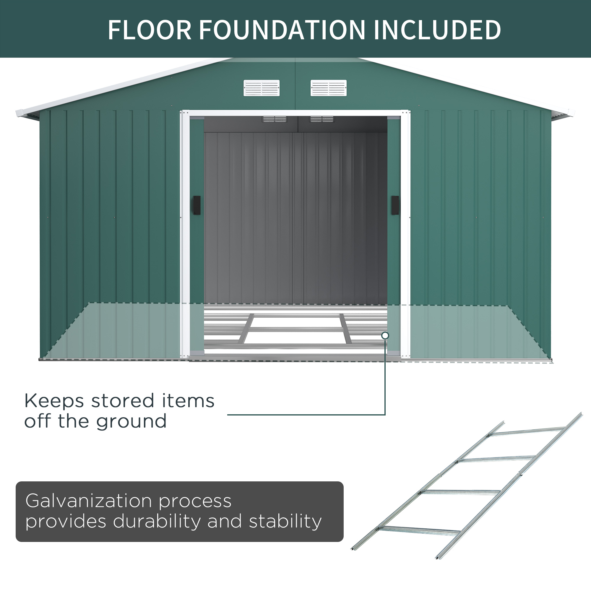 Keep your garden equipment and outdoor essentials locked away securely with this fantastic outdoor shed from Outsunny. Made from galvanised steel for enduring reliability. With a sloped roof sitting on the top to help prevent water stagnating and rust forming, this shed is finished with a protective weather coating and floor foundation so you have everything you need to install this piece. The perfect home for all your outdoor tools and gear.