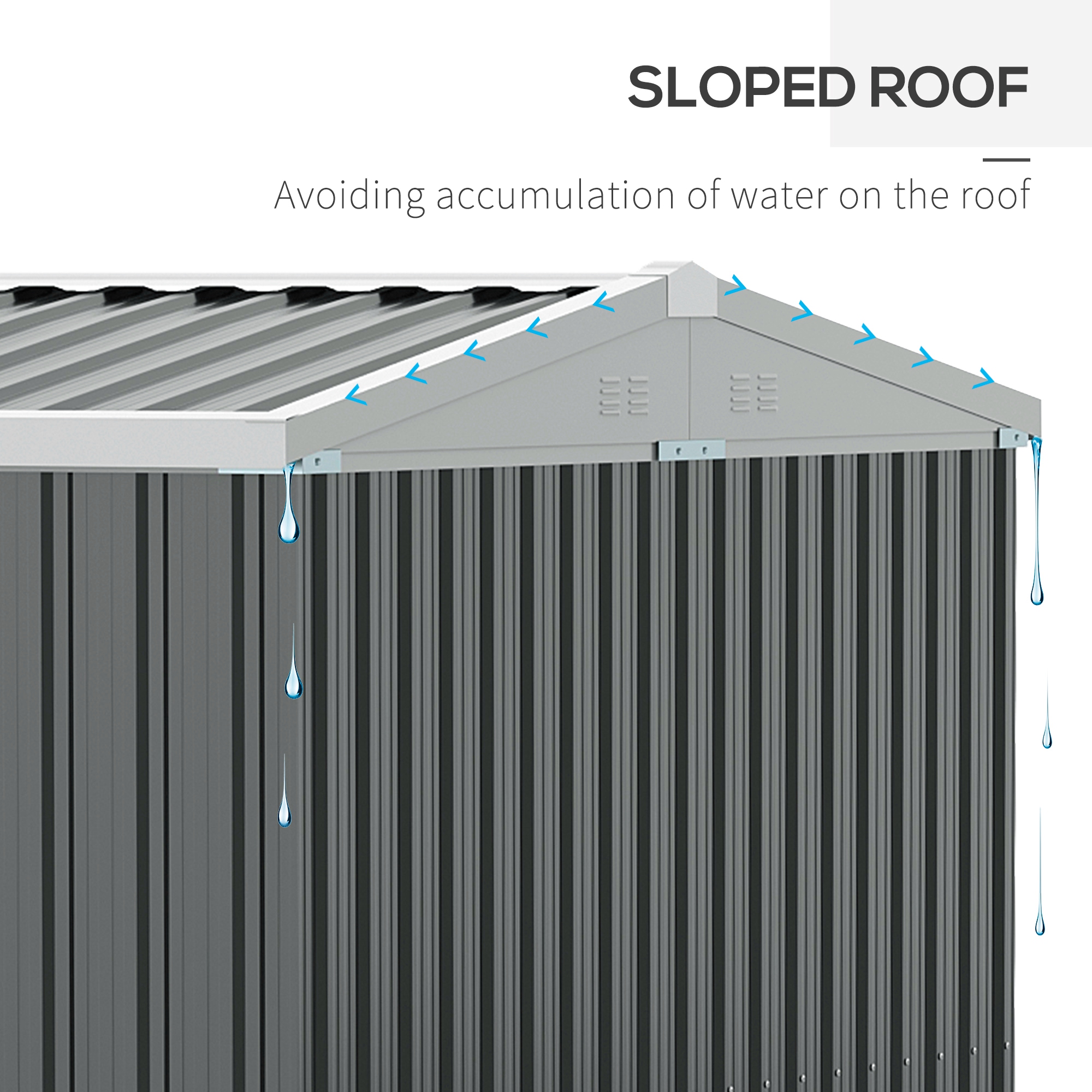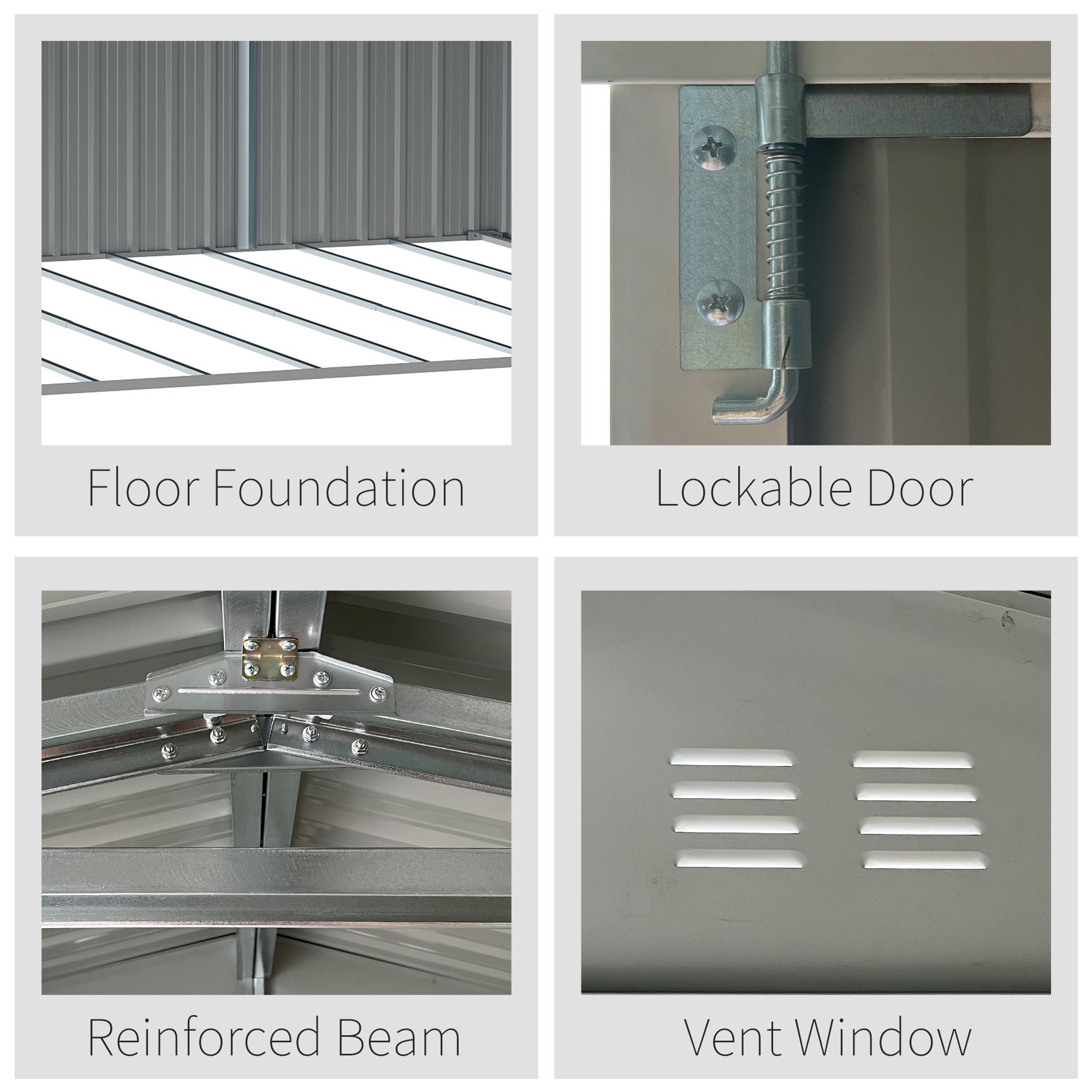 Easily add storage space and value to your property with an outdoor garden shed from Outsunny. The steel tool storage shed has distinct advantages over traditional wooden models that make it a much more attractive choice for purchase. Large space for keeping tools, equipment, bikes and bins. Besides, the durable and weather-resistant galvanized steel ensure reliable daily use. Sloped roof is easy for rain draining. This backyard storage shed can be your perfect choice for patio and lawn.