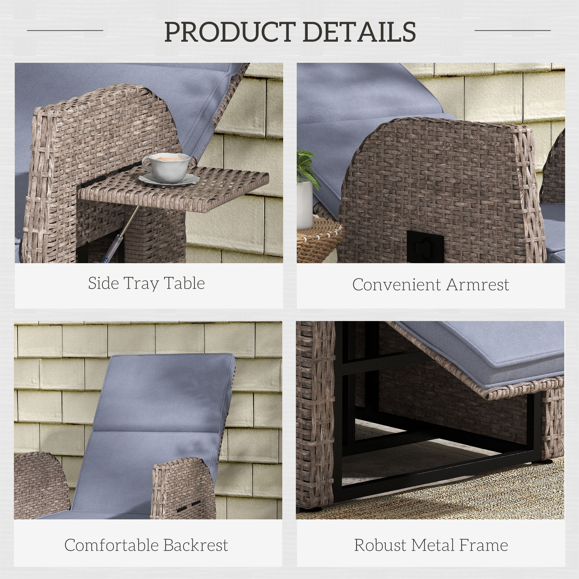 Forever on-trend rattan style, at an angle you want to relax - thanks to this Outsunny outdoor reclining chair. The adjustable back goes to a maximum 148° angle - pair with the footrest for full body relaxation. The seat comes with a thick cushion for plenty of comfort; use the side table to keep items right next to you - no moving from this garden recliner chair once sat down.