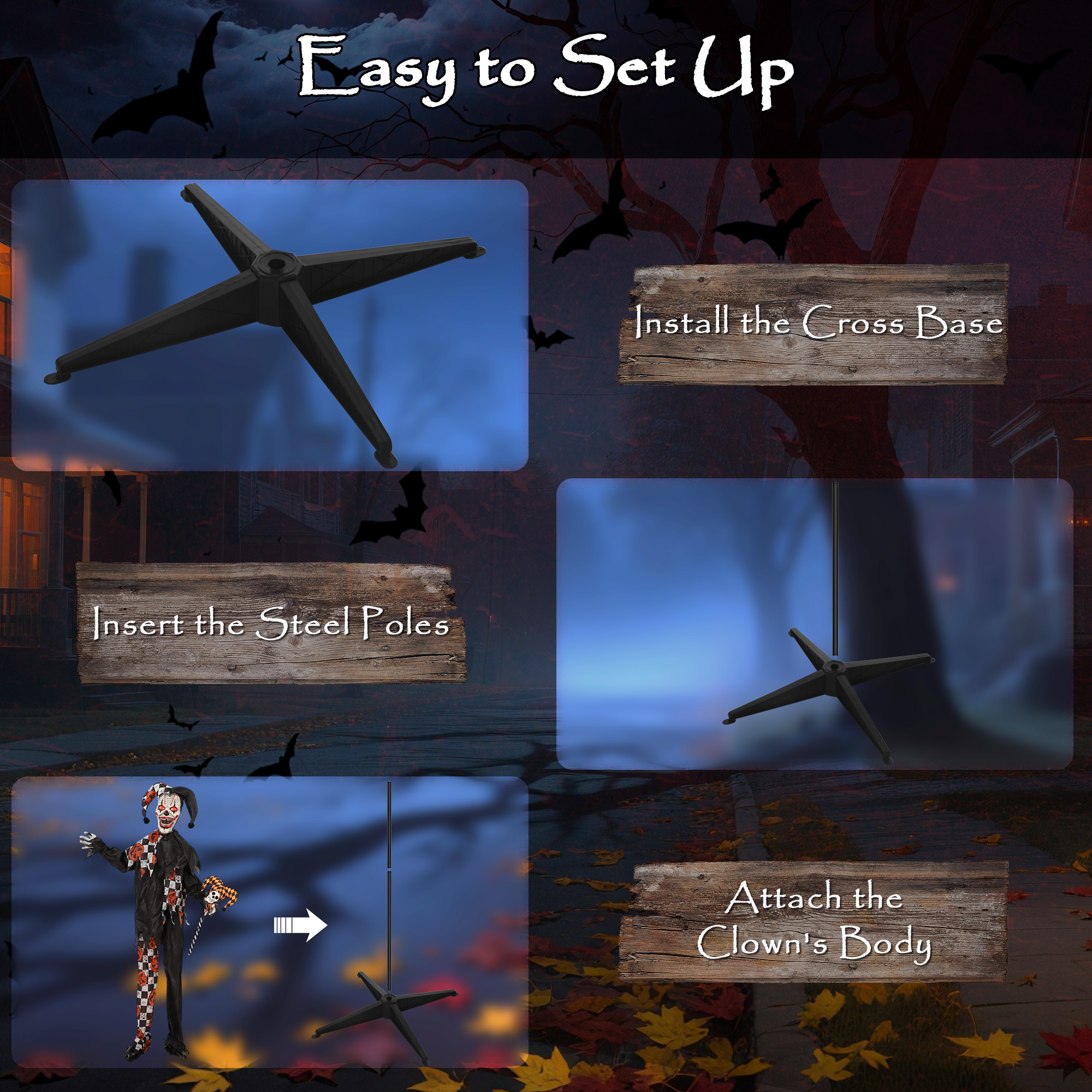 - Easy assembly and battery operation for quick, effortless Halloween scene setup
