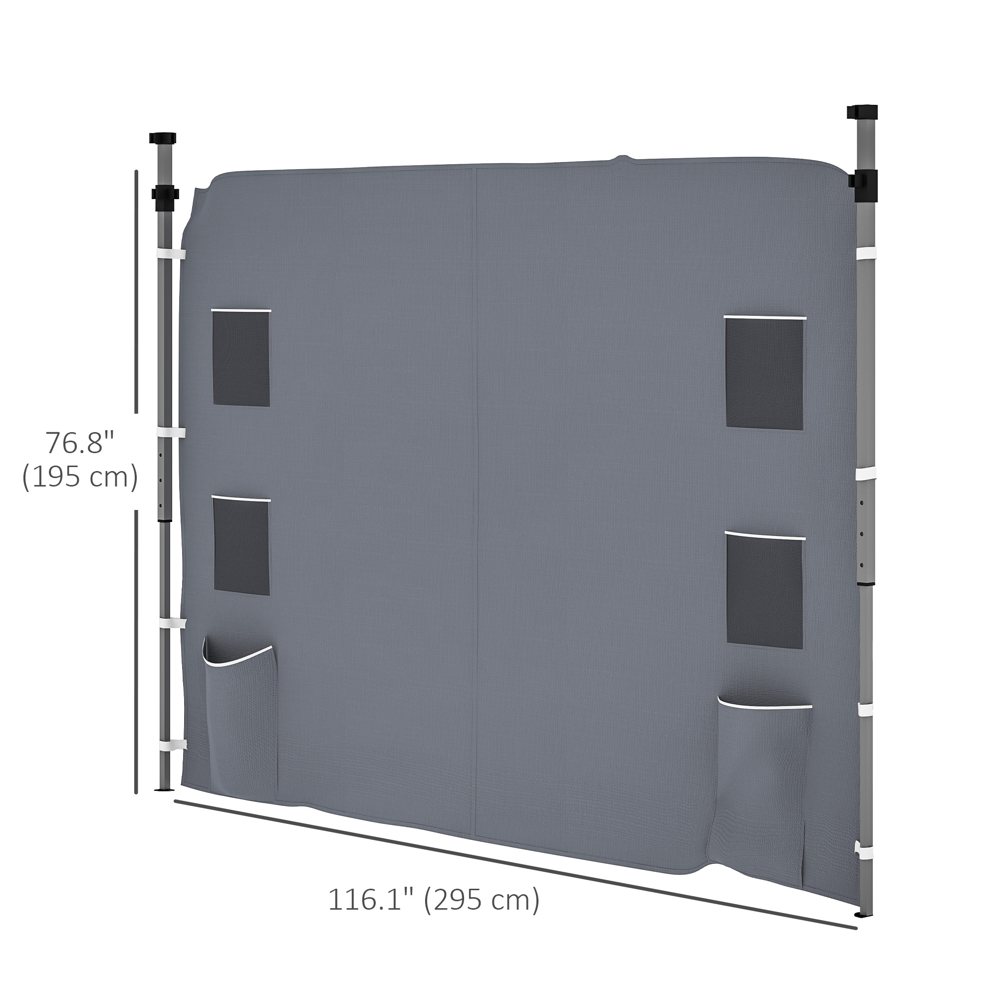 The easy way to refresh your Outsunny 3 x 3 m gazebo, with this replacement 195 x 295cm sidewall. It has four mesh bags and two pockets integrated for handy, close-by storage. Made from oxford fabric, it is durable for extended use outdoors. The hook and loop fasteners allow you to attach and remove easily - a hassle-free replacement.