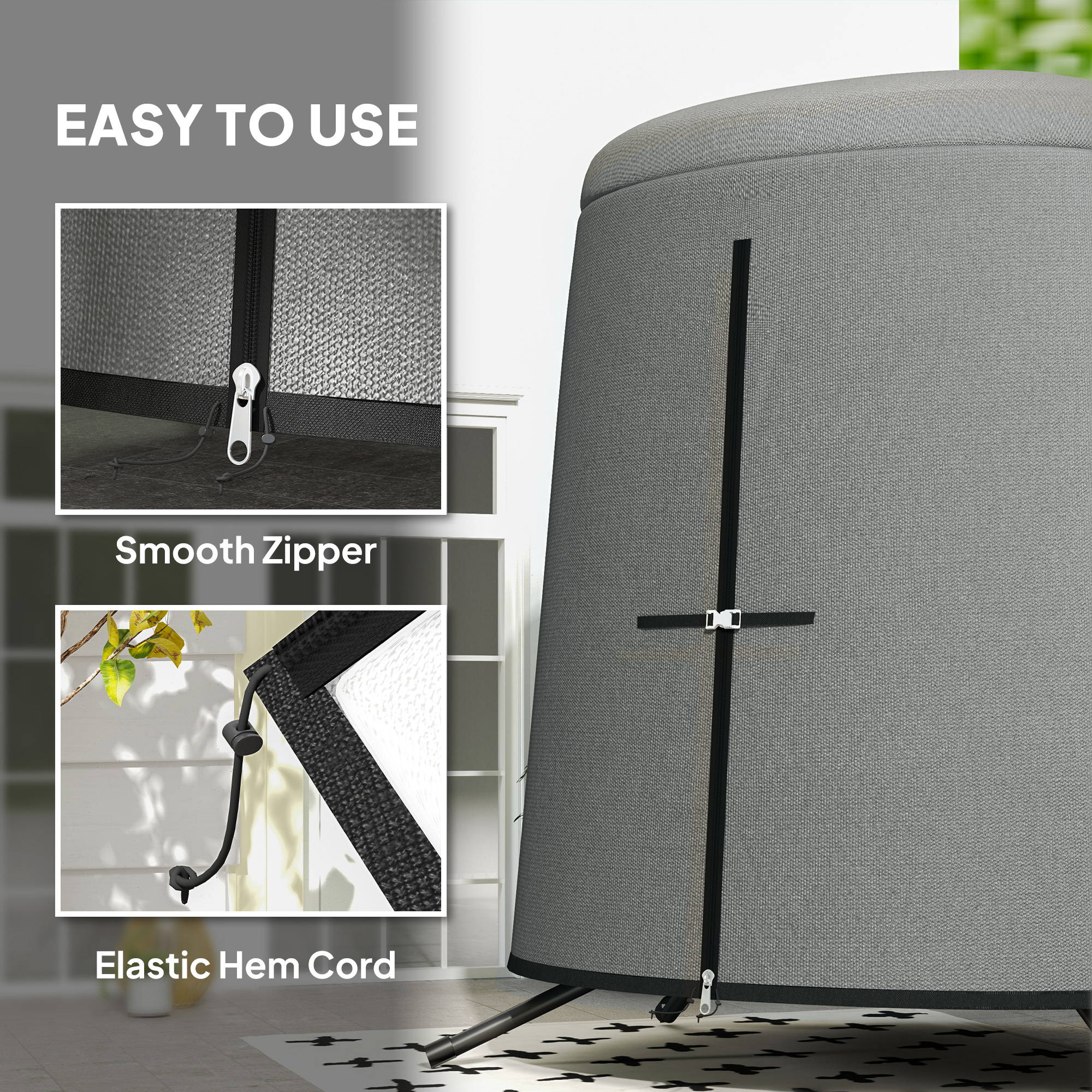 Protect your Outsunny egg chair with this cover. Made from Oxford fabric, it is a robust piece, with a plastic coating to create a weather-resistant top layer: protects against sun, rain, wind and dirt. The zip fastening makes it easy to put on and remove, with a pull cord fastening for a tight and secure fit.