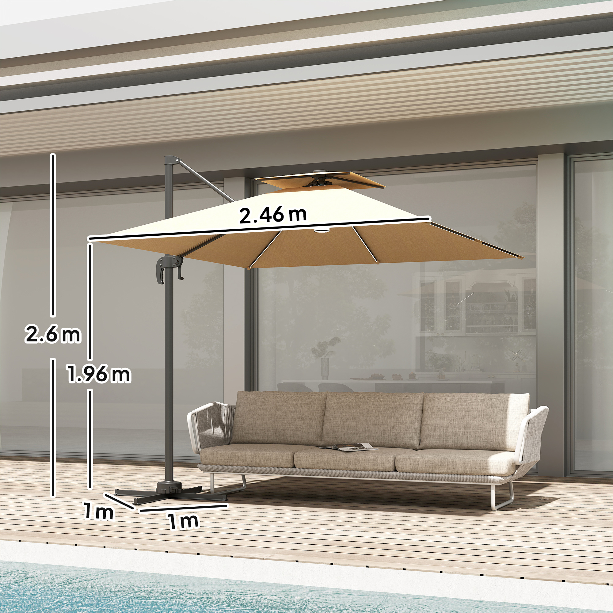 Light up your evenings with the Outsunny Cantilever Parasol, complete with solar-powered LED lights. This overhanging parasol rotates 360° to keep you shaded all day and its easy crank system ensures hassle-free operation. Suitable for any outdoor space, it's a great overhanging parasol with lights for added ambience in your garden.