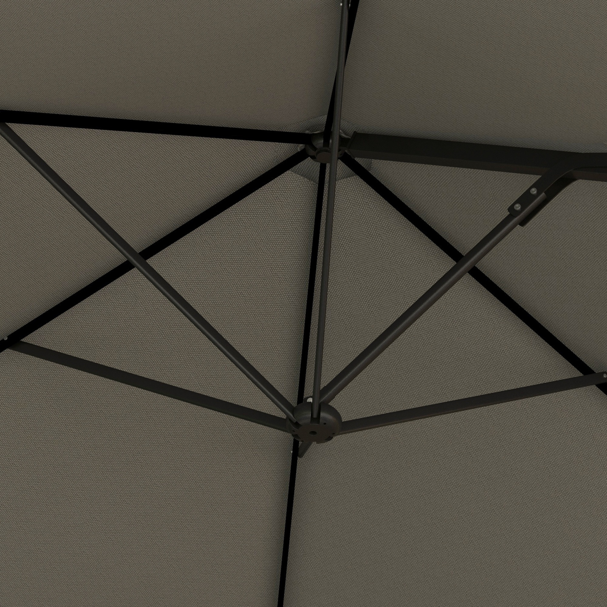 Overhanging shade for the sunny days comes from this Outsunny cantilever parasol, with base included. The Φ256cm canopy, made from thick polyester, protects you underneath; it rotates a full 360°, so you can keep protected from direct sun at different angles. A powder coated metal pole ensures a strong structure, with ribs attached to the canopy for extra support. The overhanging design means you can create shade practically anywhere.