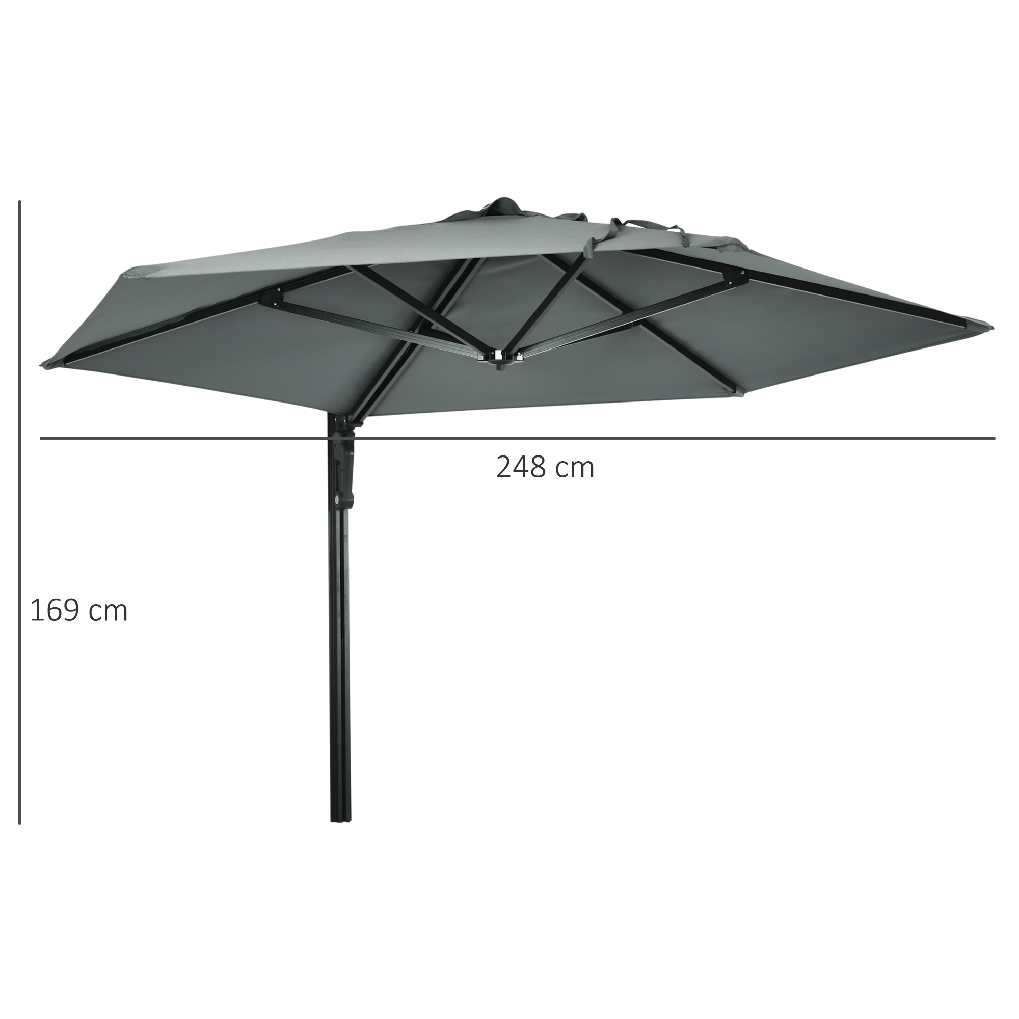 Like to read in the great outdoors? Enjoy picnics out in the summer breeze? Say goodbye to sunburns this summer with Outsunny 2.5 m parasol. Wall-mounted design makes it save space without sacrificing shade protection. Our patio umbrella offers enough shade at an ideal position that you control with its 180° rotating canopy. Made of polyester fabric and a sturdy aluminium frame for outdoor-ready . Take the hot tub umbrella home and it will provide soothing shade for you throughout the summer.