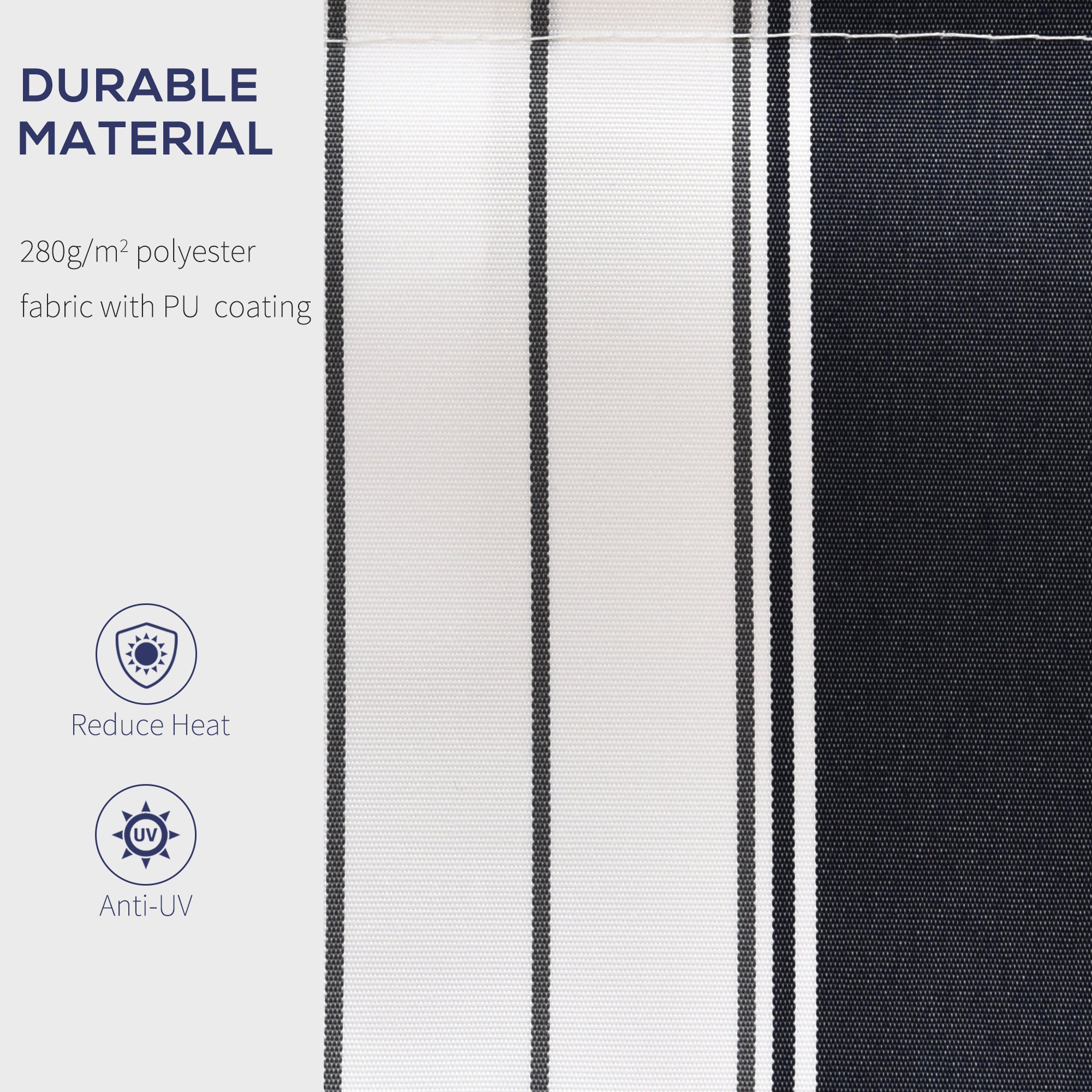 With a sturdy aluminum and steel blend frame, this Outsunny sun canopy awning is ideal for creating shade when needed. The thick 280gsm polyester canopy will protect you from any excessive heat and sunlight to keep you cool and comfortable. It can be easily mounted on the wall with the included accessories. The garden canopy retractable operation means you can open and close it whenever - a fuss-free way to extend your time in the Summer safely and comfortably.\n