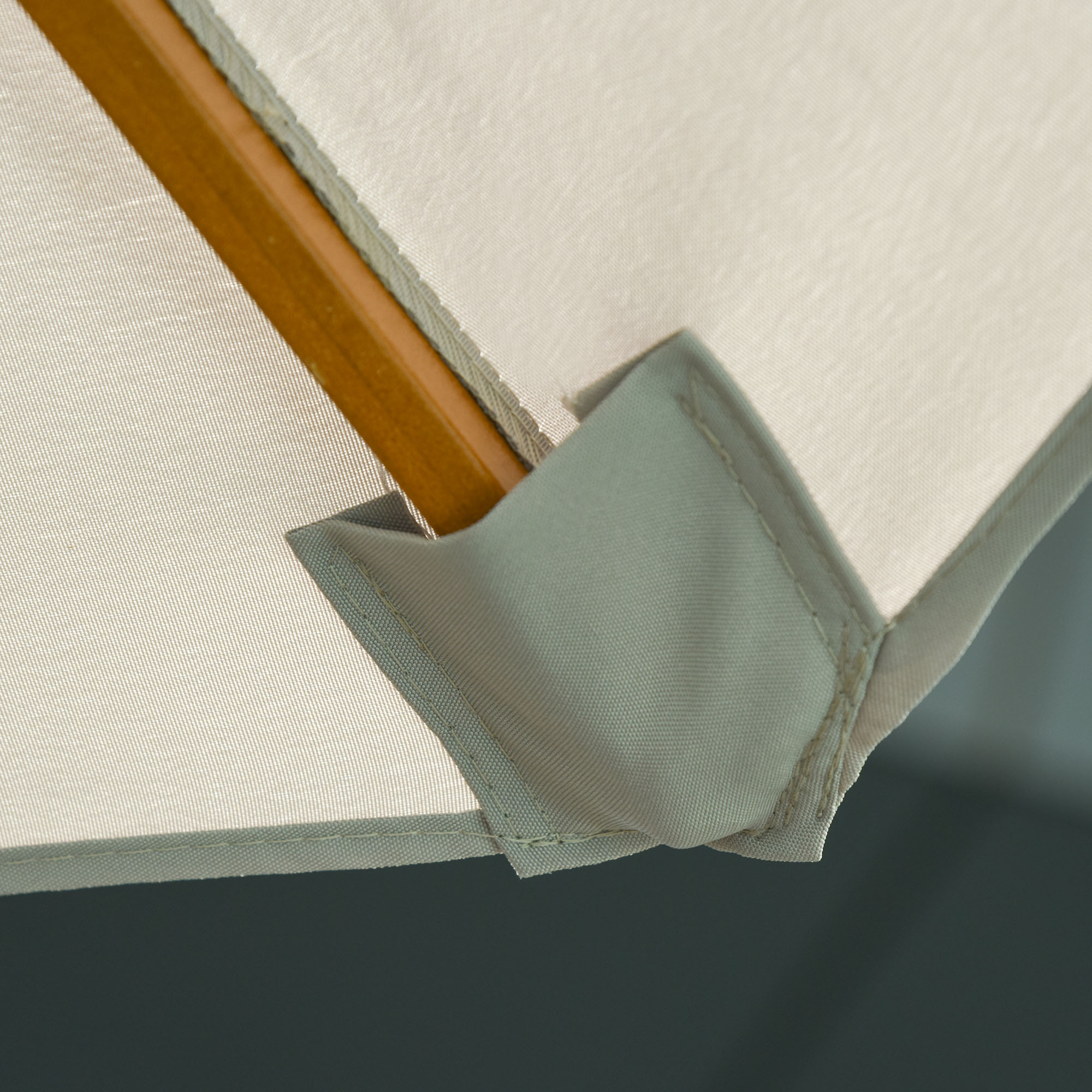 Live the elegant way this season and beyond - choose this Outsunny umbrella for your garden table. The main structure is made from poplar wood, providing a visually appealing alternative to standard metal. The wood is tough enough to be used all day long, with eight bamboo ribs connecting the canopy to the pole; enhanced support and strength. A two-tier canopy to help prevent
