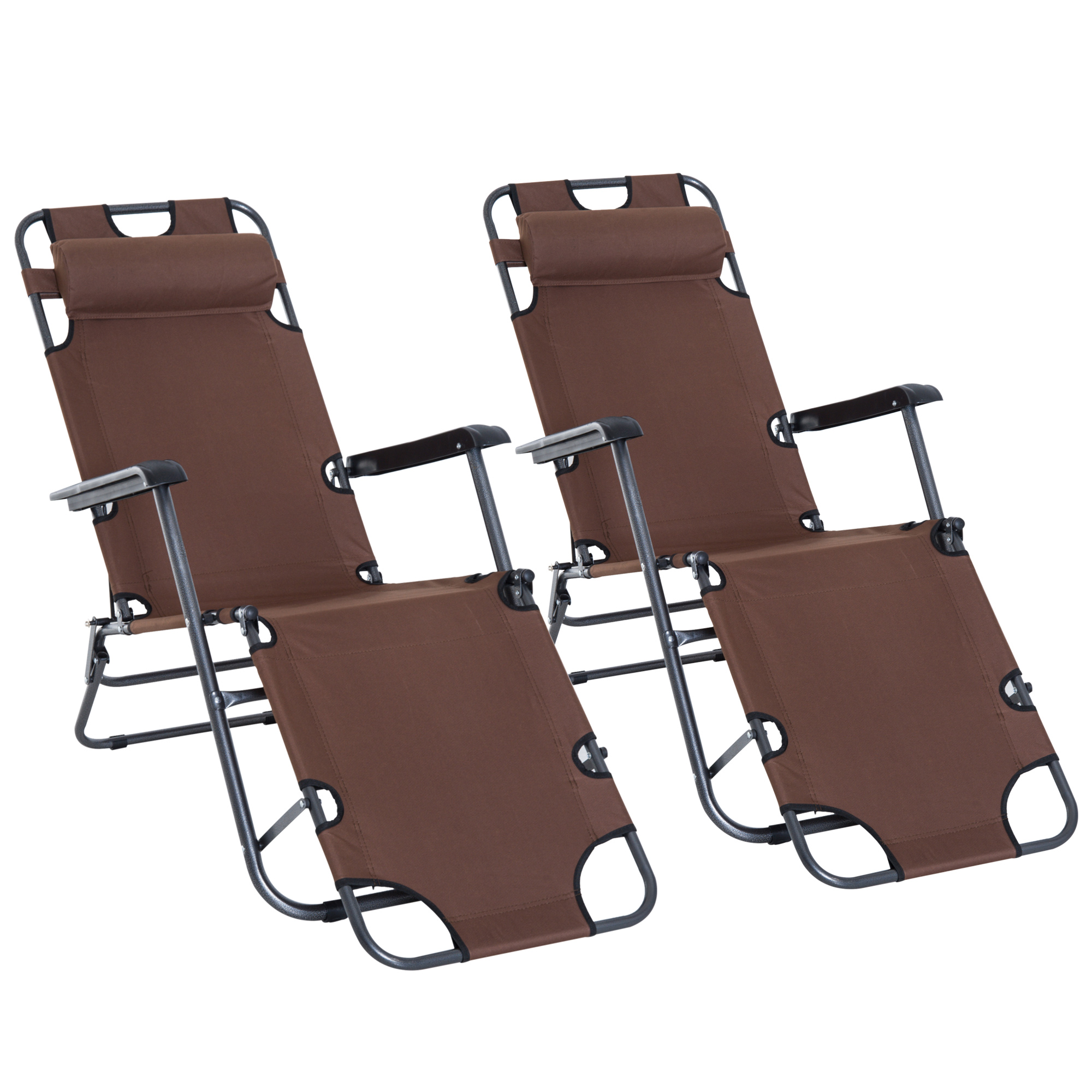 Take comfort with you anywhere to enjoy the summer heat with this Outsunny reclining garden chairs. Using a steel frame which is tough, the folding sun lounger is made into a long design, giving you lots of room to unwind. The garden loungers can be adjusted to two levels, meaning you can pick the correct back angle for you, with a pillow adding extra comfort. Foldable for easy carrying, this reclining sun lounger comes fully assembled, meaning once it arrives, you can start enjoying it.