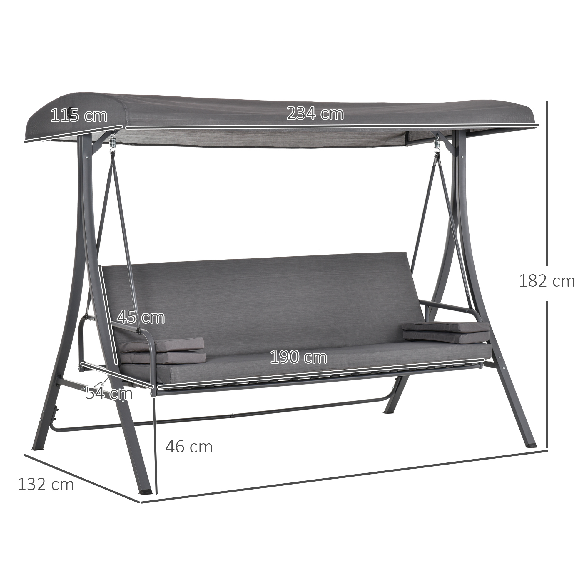 - 3 Seater swing chair converts to a comfy bed with adjustable backrest