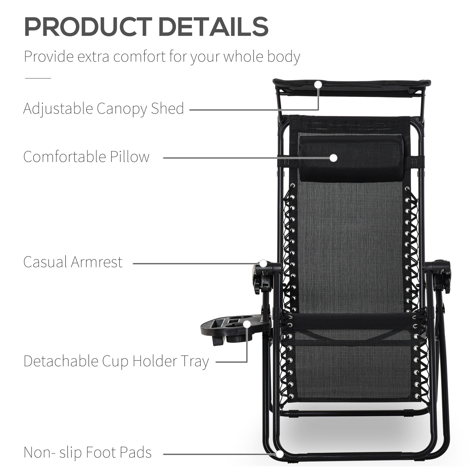 Take your time out in the sun to the next level with Outsunny reclining garden chair. Evenly distributing your weight, sun loungers for garden offers all support your body. Made from powder coated steel for strength and resistance to rusting and peeling, fitted with a breathable mesh seat, a padded headrest for comfort. With an adjustable reclining back, garden loungers equip a detachable side tray to keep drinks, magazines and books close to you. The gateway to total relaxation in your garden.