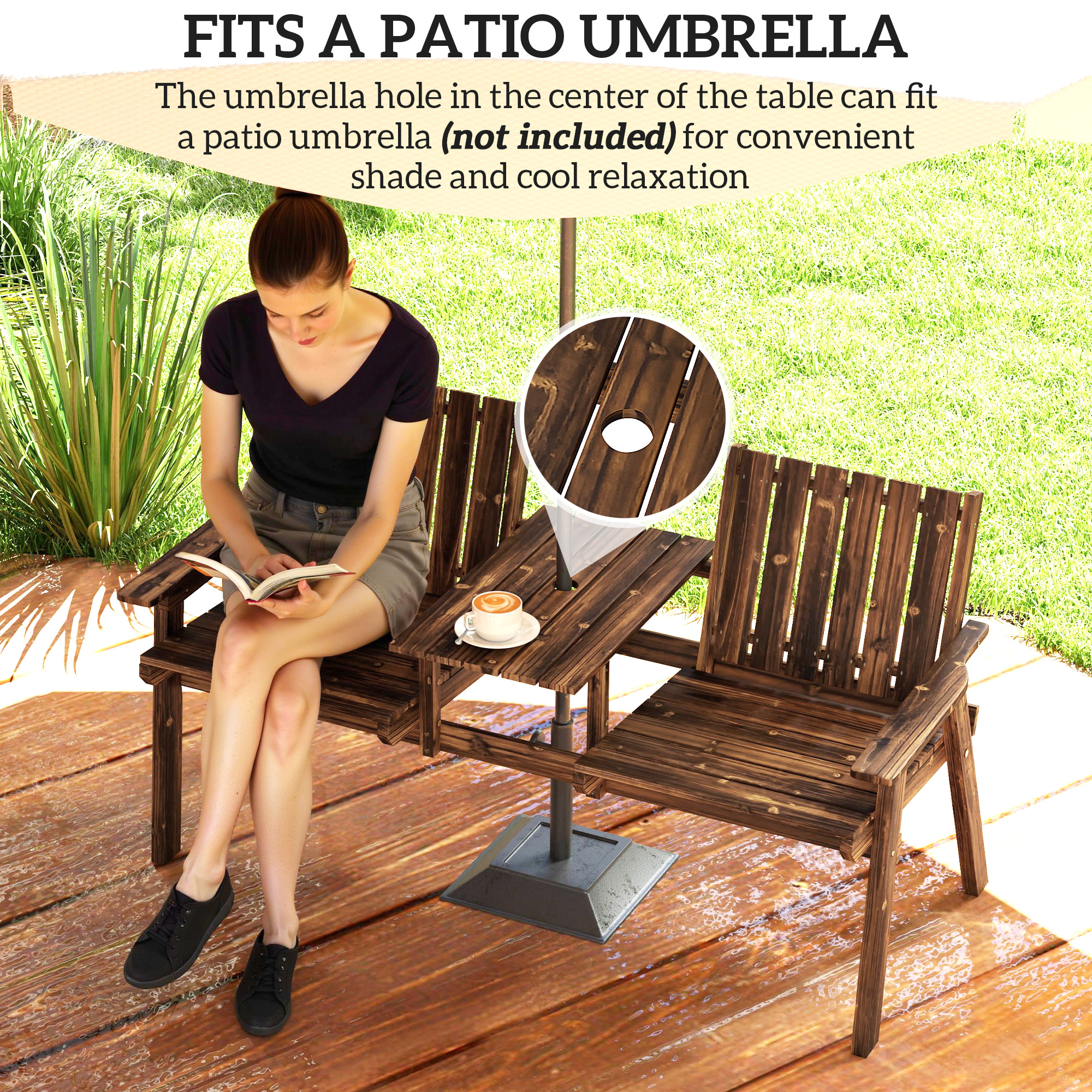 Get the most out of the warm weather, with a friend, thanks to Outsunny. This outdoor bench forges two seats and a table together. Made from fir wood, the structure is strong-also weather resistant-so it's supportive and suitable for outdoor use. The middle table on this outside bench gives a handy resting spot, with a centre hole to hold a parasol-keeping you safely shaded in the sun. A slanted back and armrests complete our wooden benches outdoor for comfort.