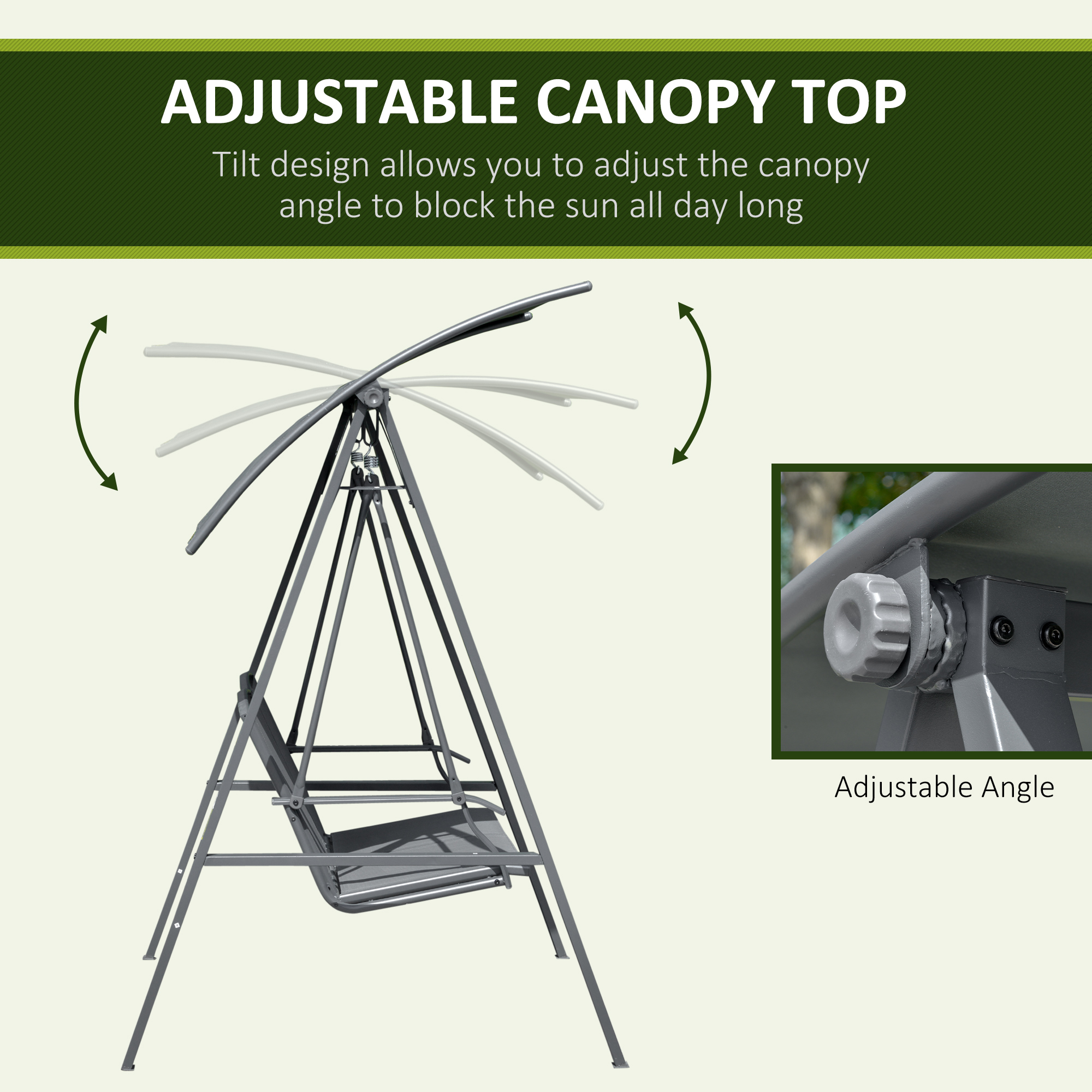 Enjoy outdoors with company, thanks to this Outsunny swinging chair. The adjustable canopy on top is easy to fix into a suitable position, protecting you from sun glare throughout the day. Two-seater size is spacious, featuring a tall back and armrests to support you. 'A' shaped legs for support and balance. Make your garden complete, this season and beyond.