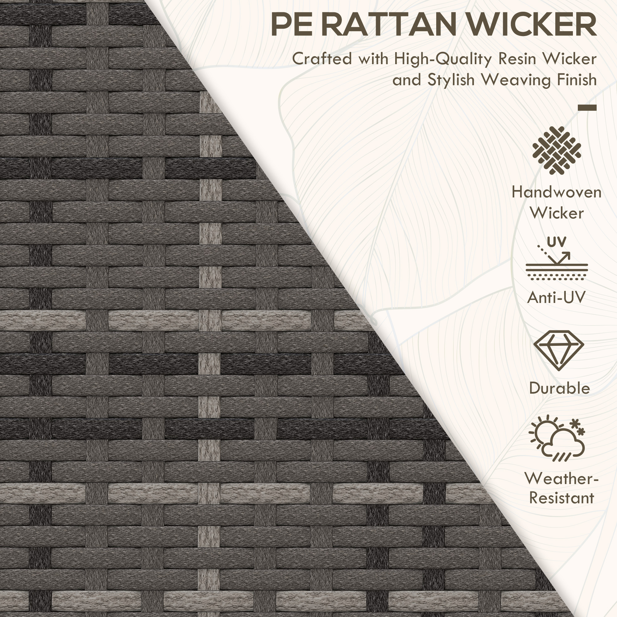 Unrivalled comfort for the garden and beyond with this Outsunny garden furniture set. Powder coated aluminium frames mean a strong core, wrapped in stylish plastic rattan - a protective shell. The two chairs feature a reclining back, maximum 150° angle, with footrest to elevate your lower body. The rattan bistro set is complete with a two-tier table for a handy holding spot.