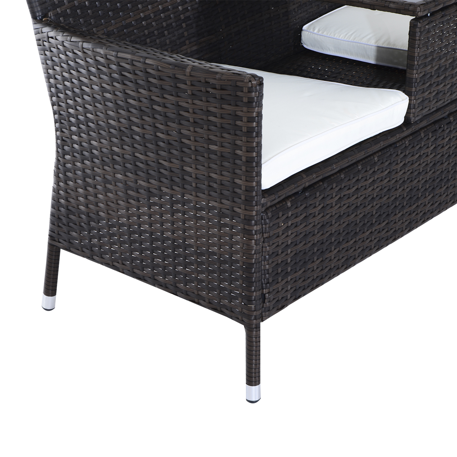 - Connected two-seat and middle table design, ideal for catching up with a friend outdoors • Metal frame for strength and support, with PE wicker rattan on the outside for mild-weather resistance and longevity