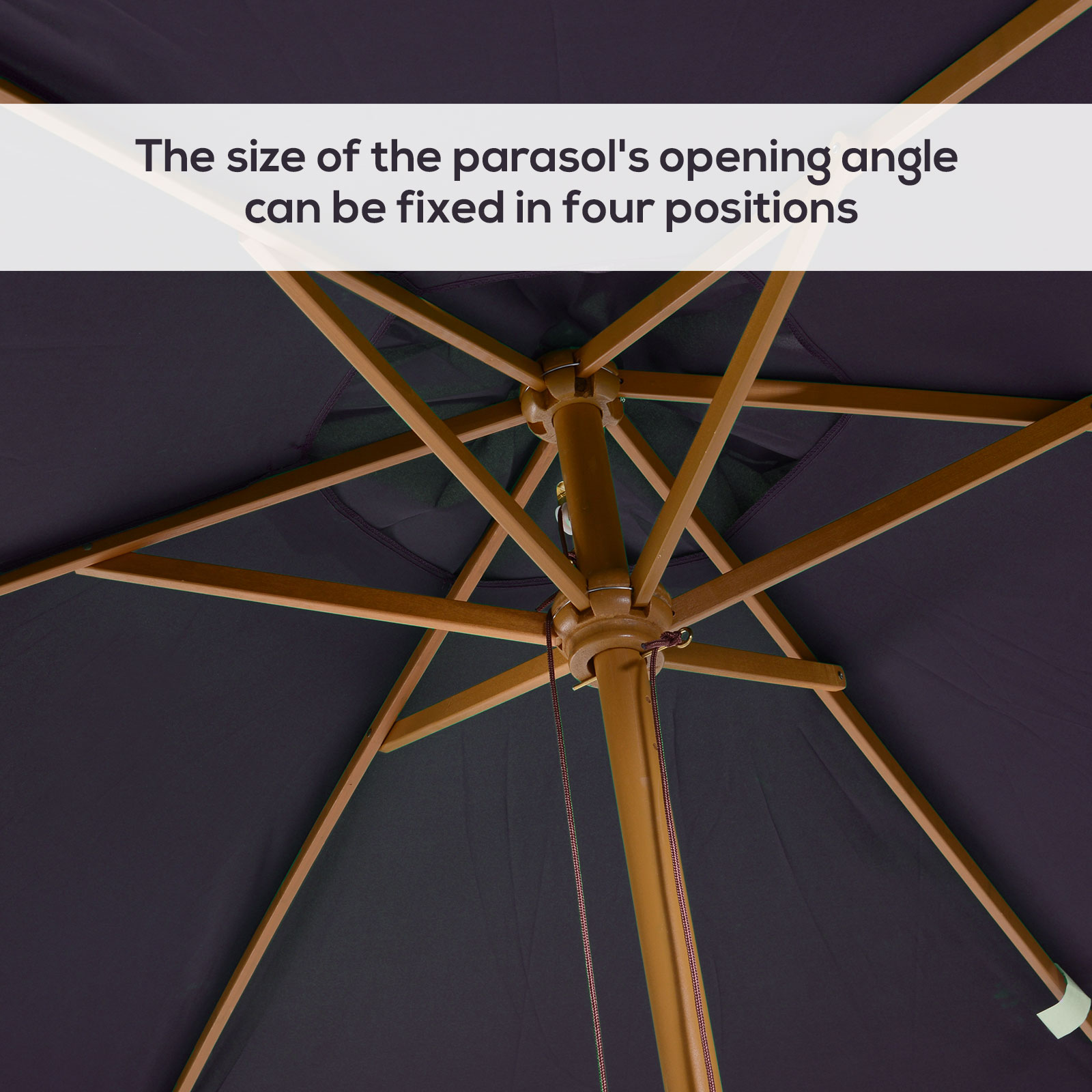 - parasol supported by 6 wooden ribs.