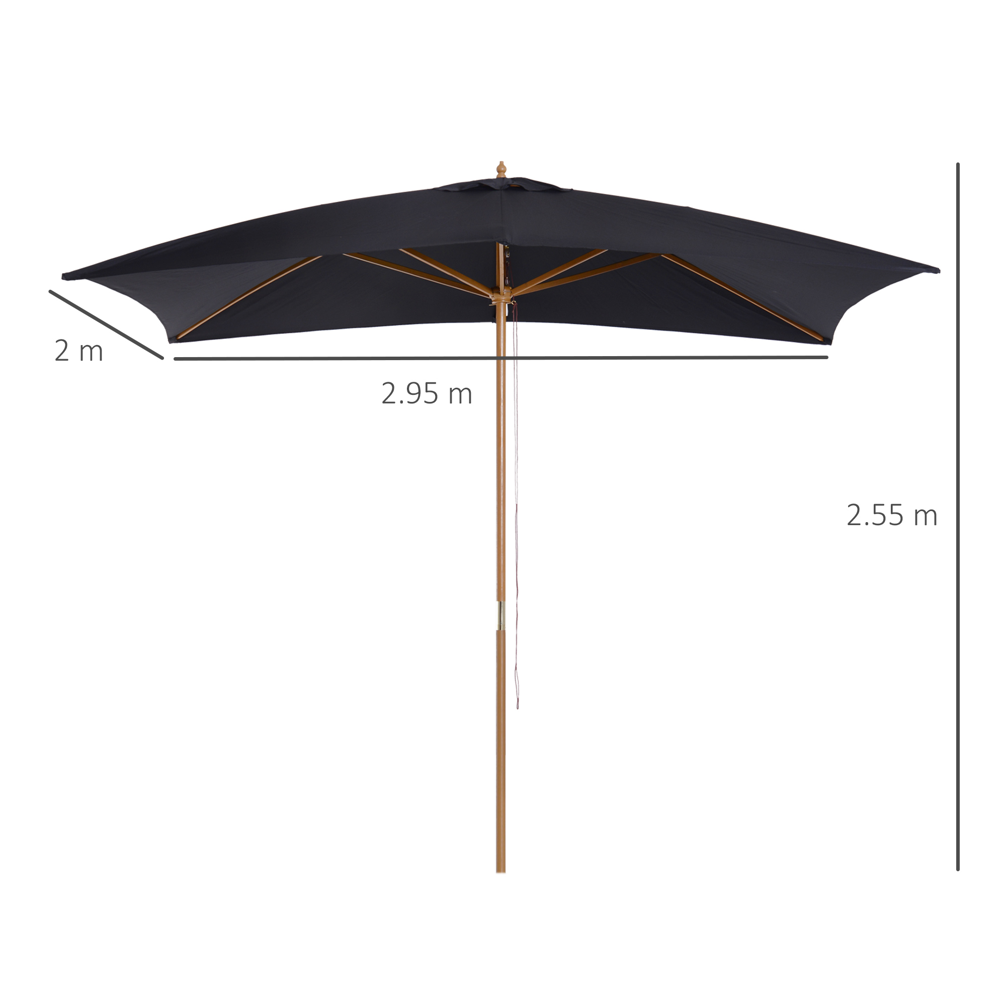 Stylishly make the most of the sun outdoors with this large garden umbrella from Outsunny. Built from wood, the main pole is extremely strong and stable and has been built to last for years to come. Made from 180g/㎡ polyester, the canopy will protect you from sunlight, UV and light rain, making it ideal for sitting out all day long. It's the ideal blend of beauty and functionality.