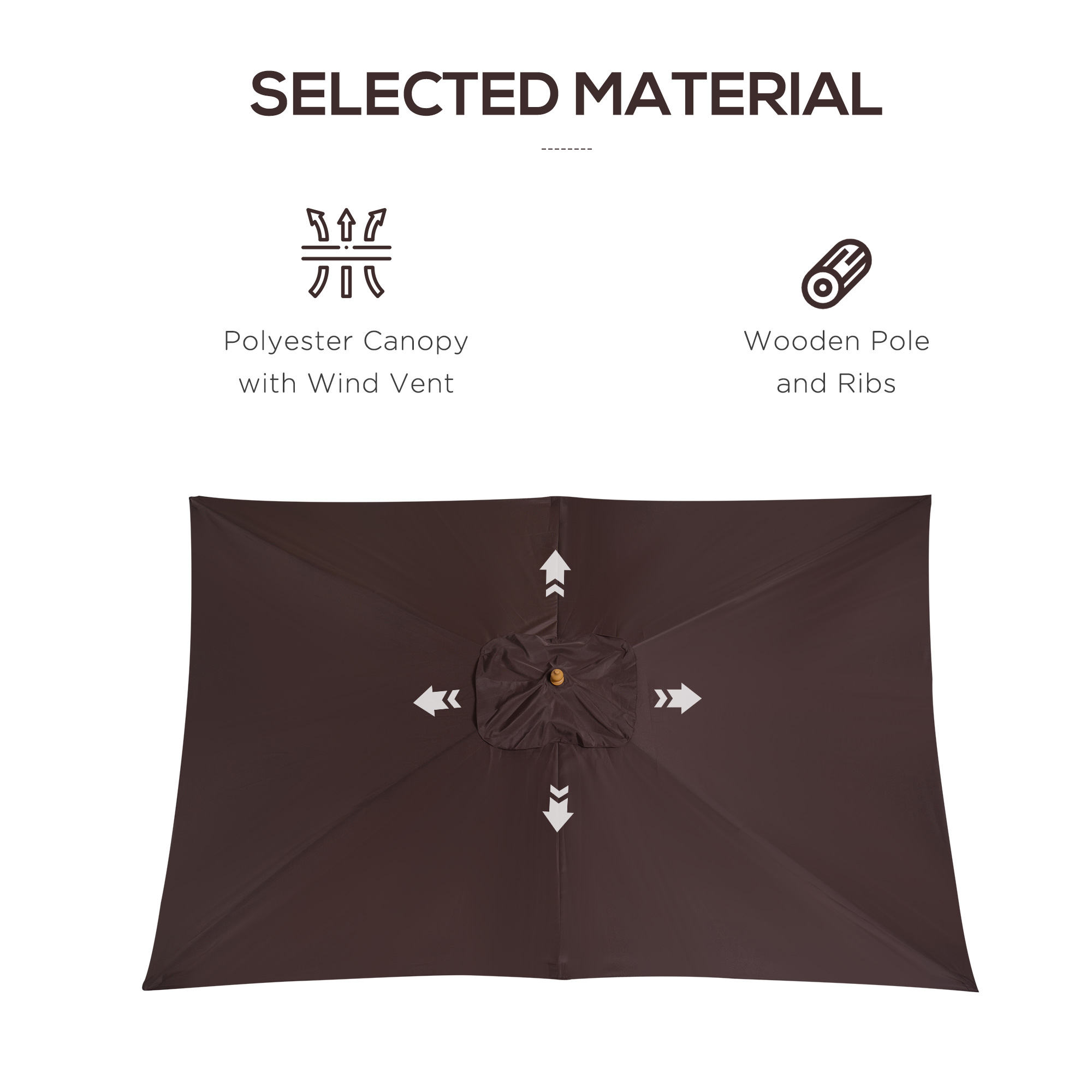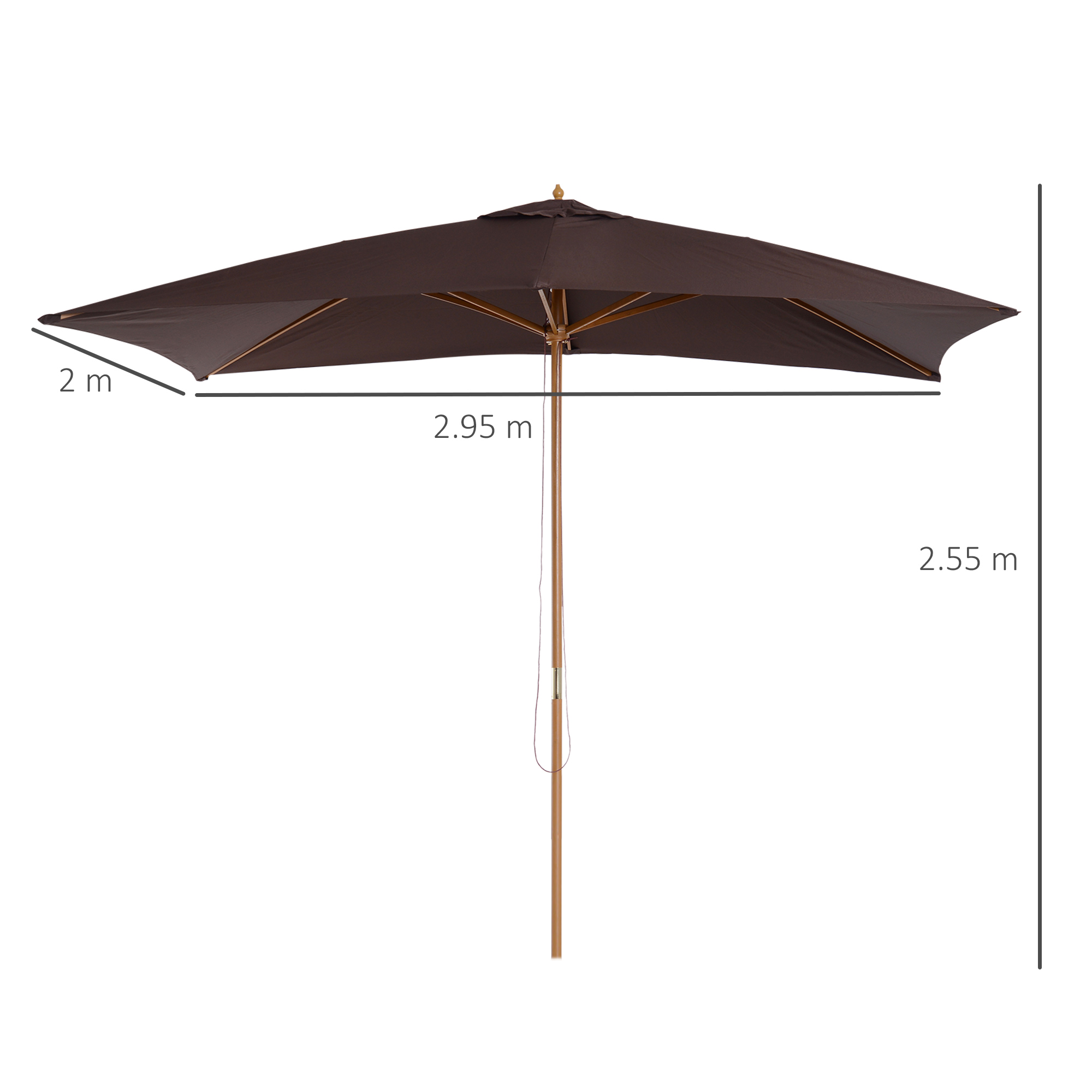 Stylishly make the most of the sun outdoors with this large garden umbrella from Outsunny. Built from wood, the main pole is extremely strong and stable and has been built to last for years to come. Made from 180g/㎡ polyester, the canopy will protect you from sunlight, UV and light rain, making it ideal for sitting out all day long. It's the ideal blend of beauty and functionality.