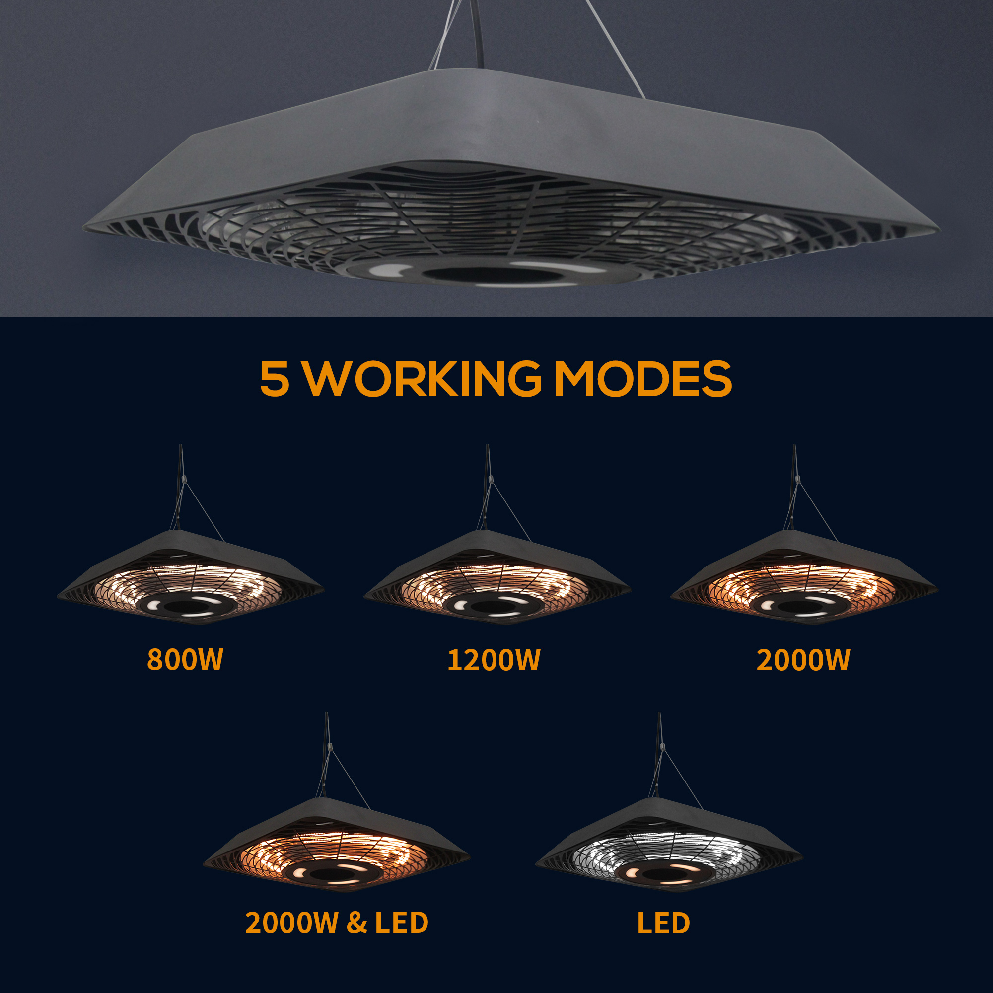Let being cold outdoors be a thing of the past with this hanging garden heater from HOMCOM. It is crafted into a stylish rounded square design to ensure you'll love having it as part of your home. Inside four halogen bulbs are placed, with the temperature easily adjusting between 800W, 1200W and 2000W to allow you to be in control of the heat, as well as a light which can be used remotely if you do not require the heat. The ideal solution for the colder temperatures.