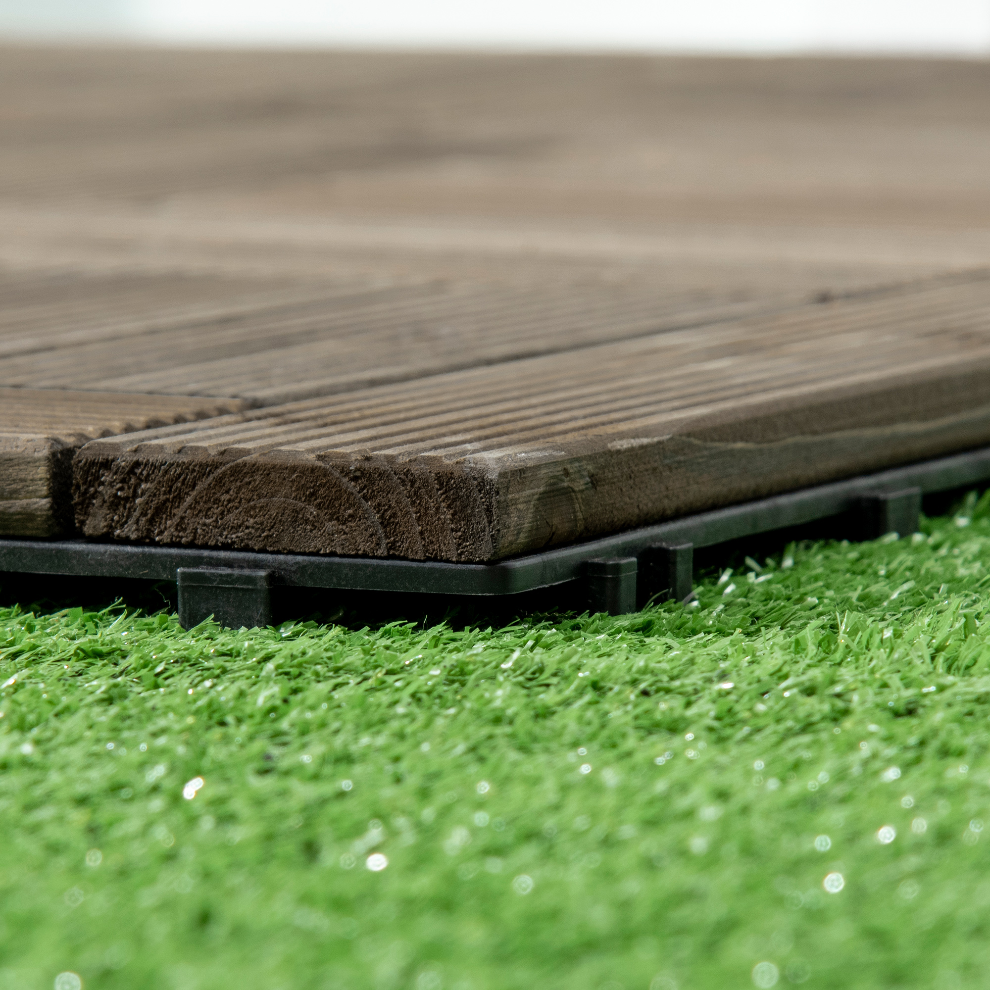 This Outsunny 27 piece tile pack is designed to transform your flooring, instantly. Fitted together, they'll meet demands of the floor, no matter if in a back garden space, a balcony area, patio and beyond. Each piece is made from solid wood for wearability, with PVC bottoms for slip resistance. 27 pieces cover a 2.5㎡ area; the interlocking design makes it so easy to set up into place.