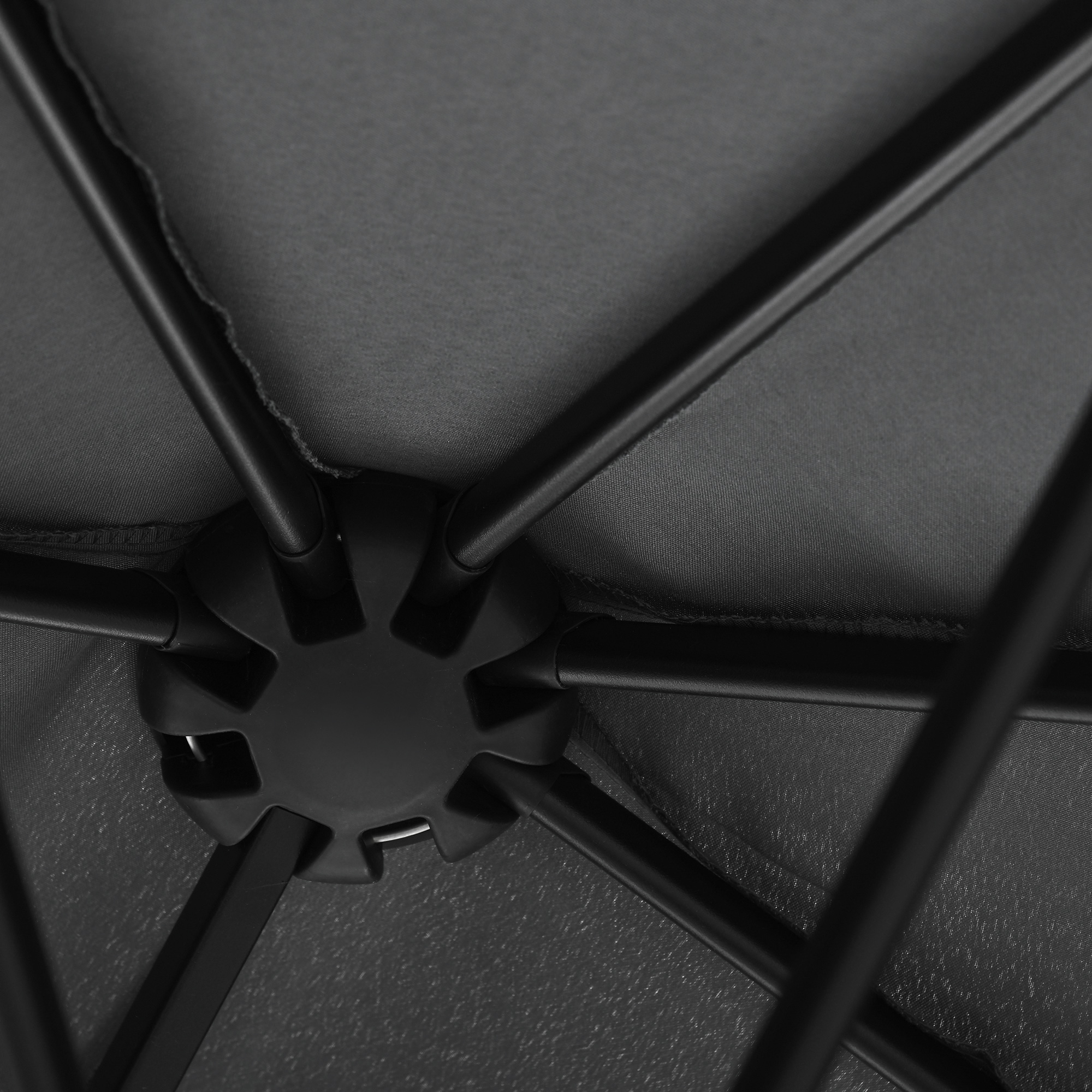 - Steel frame is strong, ribs connect to the canopy for extra strength