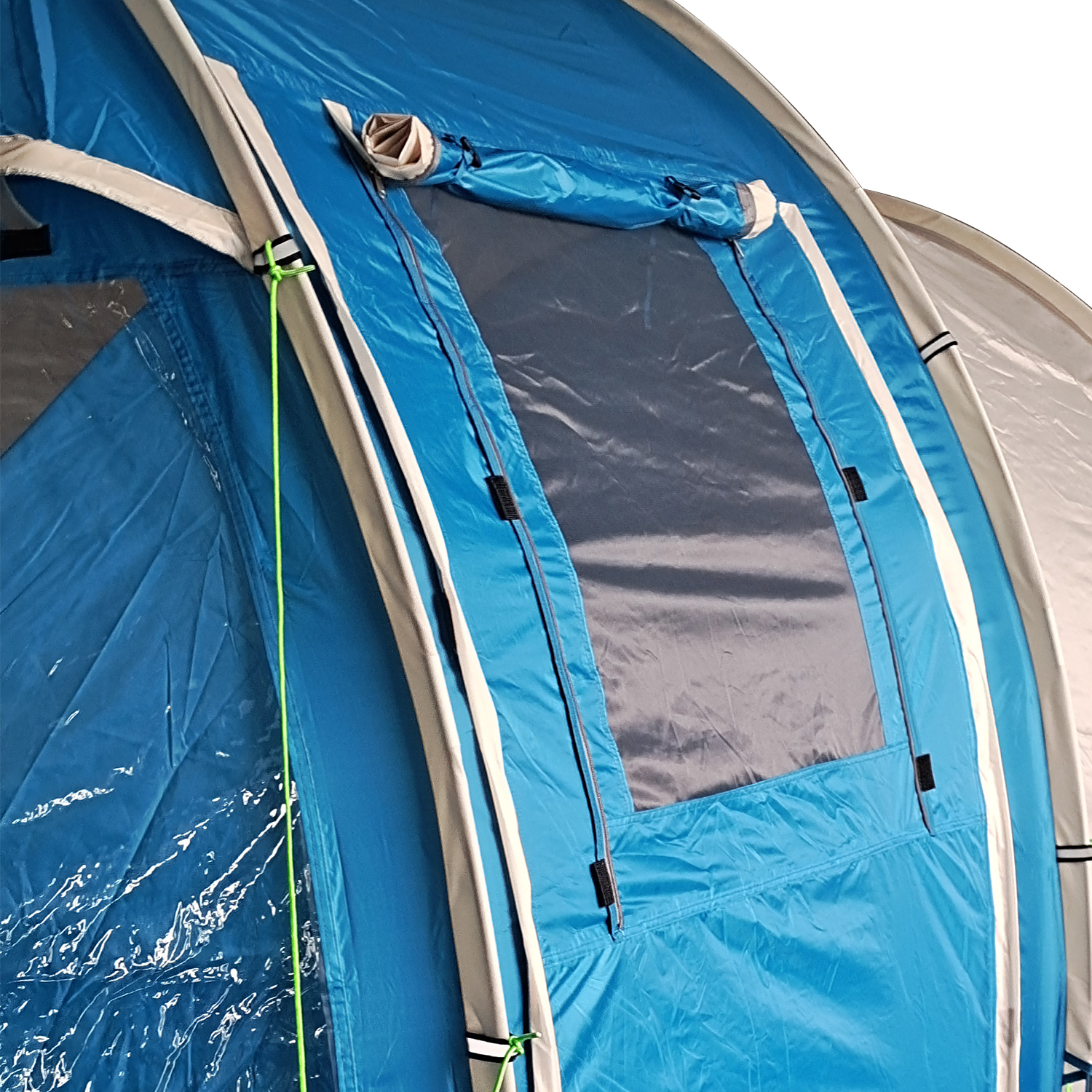 - Plastic windows for outside/inside views and mesh windows for ventilation, which come with covers for extra privacy