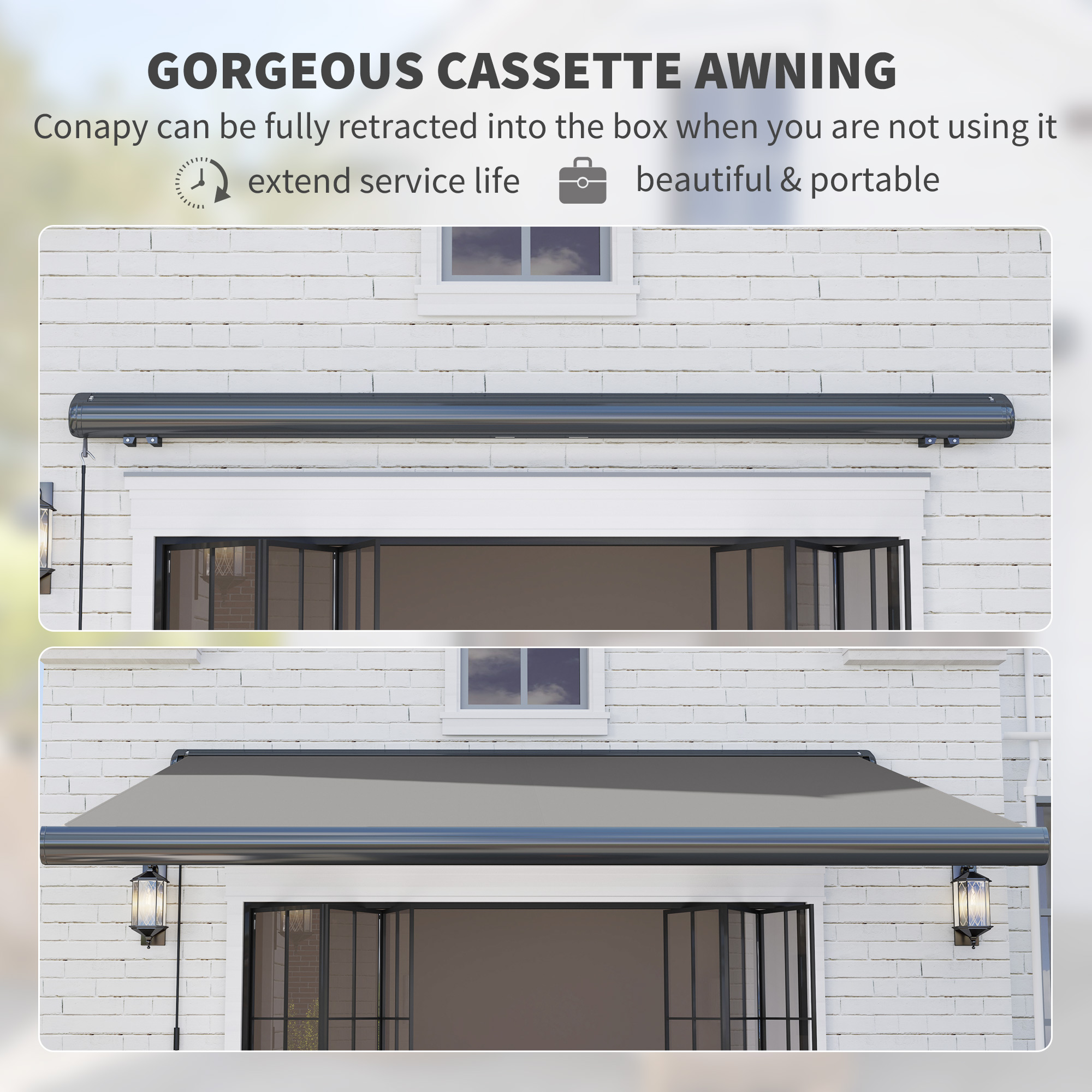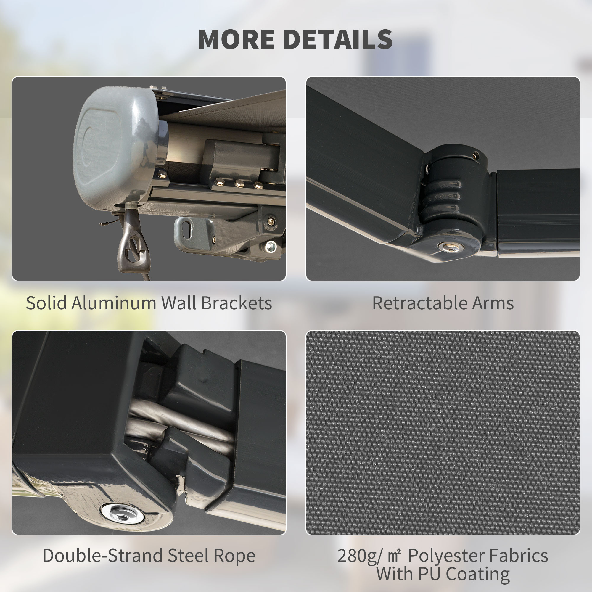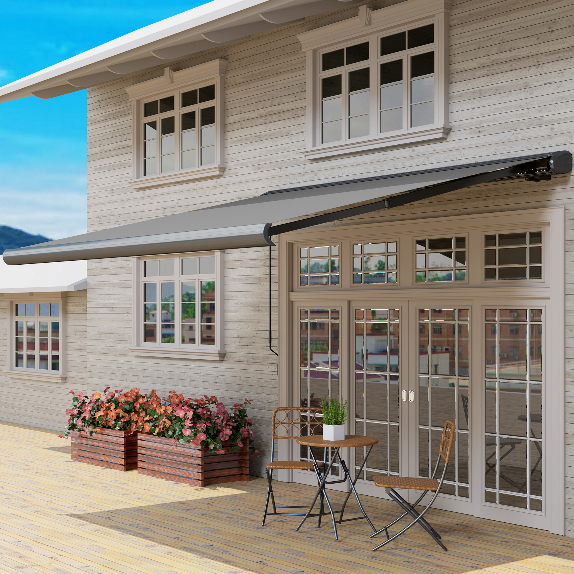Create shade over your doorways and windows effortlessly with this electric awning from Outsunny. The robust aluminium and steel frame ensures durability for outdoor use. The thick 280g/m² canopy, coated with PVC, protects against UV rays and sun glare while retaining its vibrant colour through the seasons. A manual operation handle is included for convenience. This window awning can be securely mounted to cement walls and a remote control is included for easy operation.