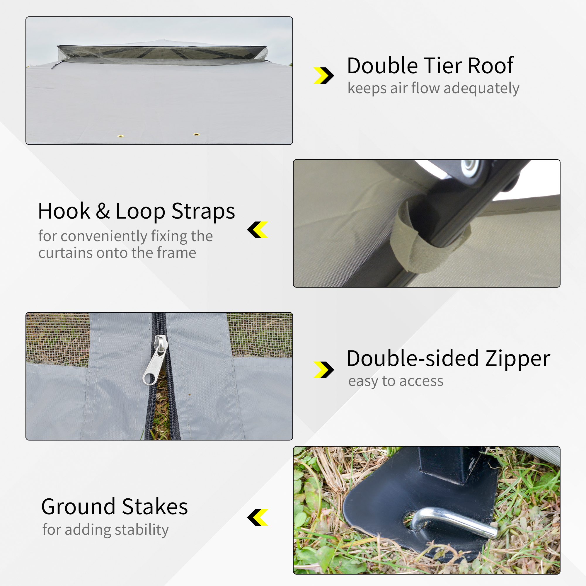 - Ground stakes and wind ropes are included for more stability