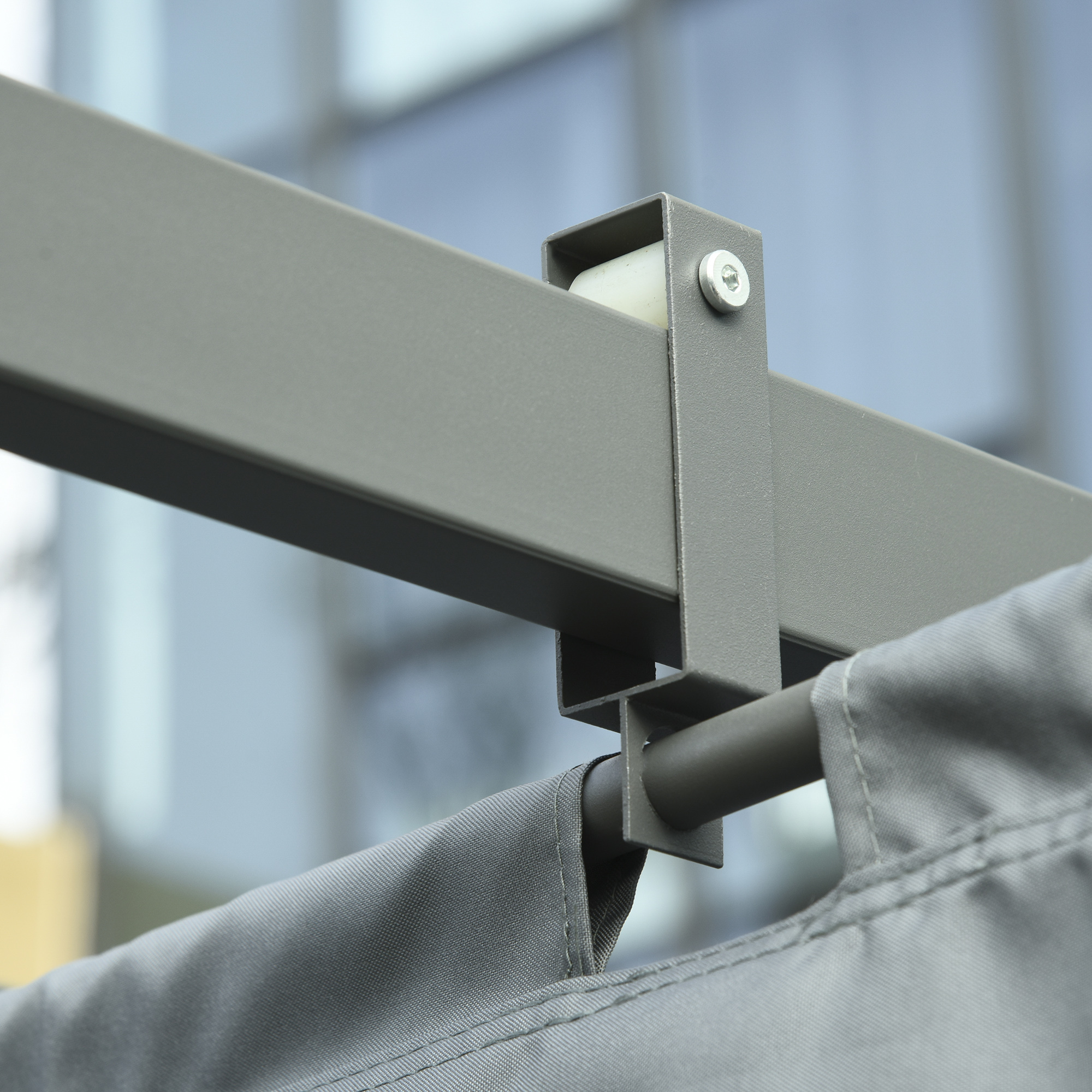 Add style and flair by bringing home this unique and practical pergola canopy by Outsunny! Large size offers plenty of room to comfortably set-up full dining or seating underneath, giving you great flexibility, style and function. All-aluminum columns ensure steady support, foldable top canopy and practical curtains provide sun shade and privacy space. A great addition to make your life more interesting!