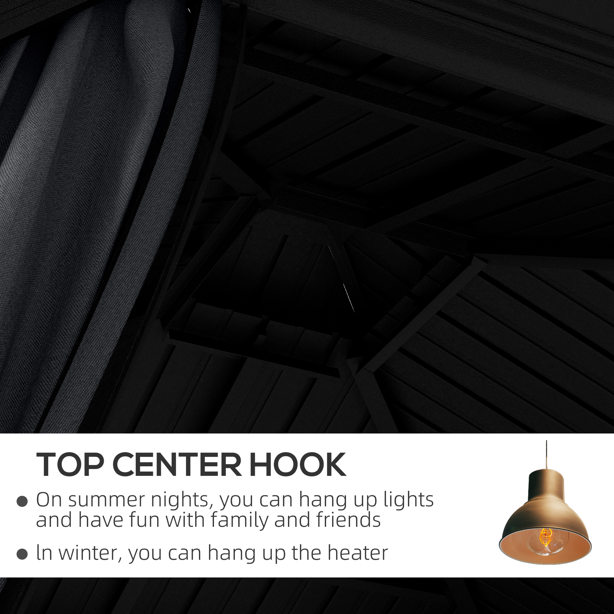 This garden pavilion from Outsunny is a must for creating the perfect party atmosphere. The aluminium frame, paired with the galvanised steel canopy means a strong and sturdy standing place. The curtains and netting create a comfortable and safe space. Set up this hard roof gazebo in the garden for anything you like - BBQs. special events and all day gatherings with friends.