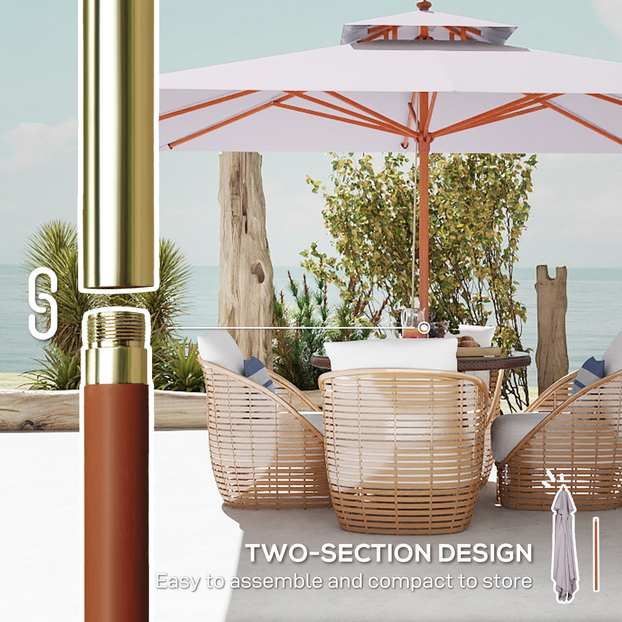 With a bamboo and poplar wood frame, this Outsunny sun parasol creates beautiful shade outdoors. The 3 m square canopy provides plenty of shelter against direct sun, with a small top tier to allow gentle airflow to prevent the canopy from overturning. The pull-rope makes it easy to open and close - complete it with an umbrella stand to keep it standing in place.
