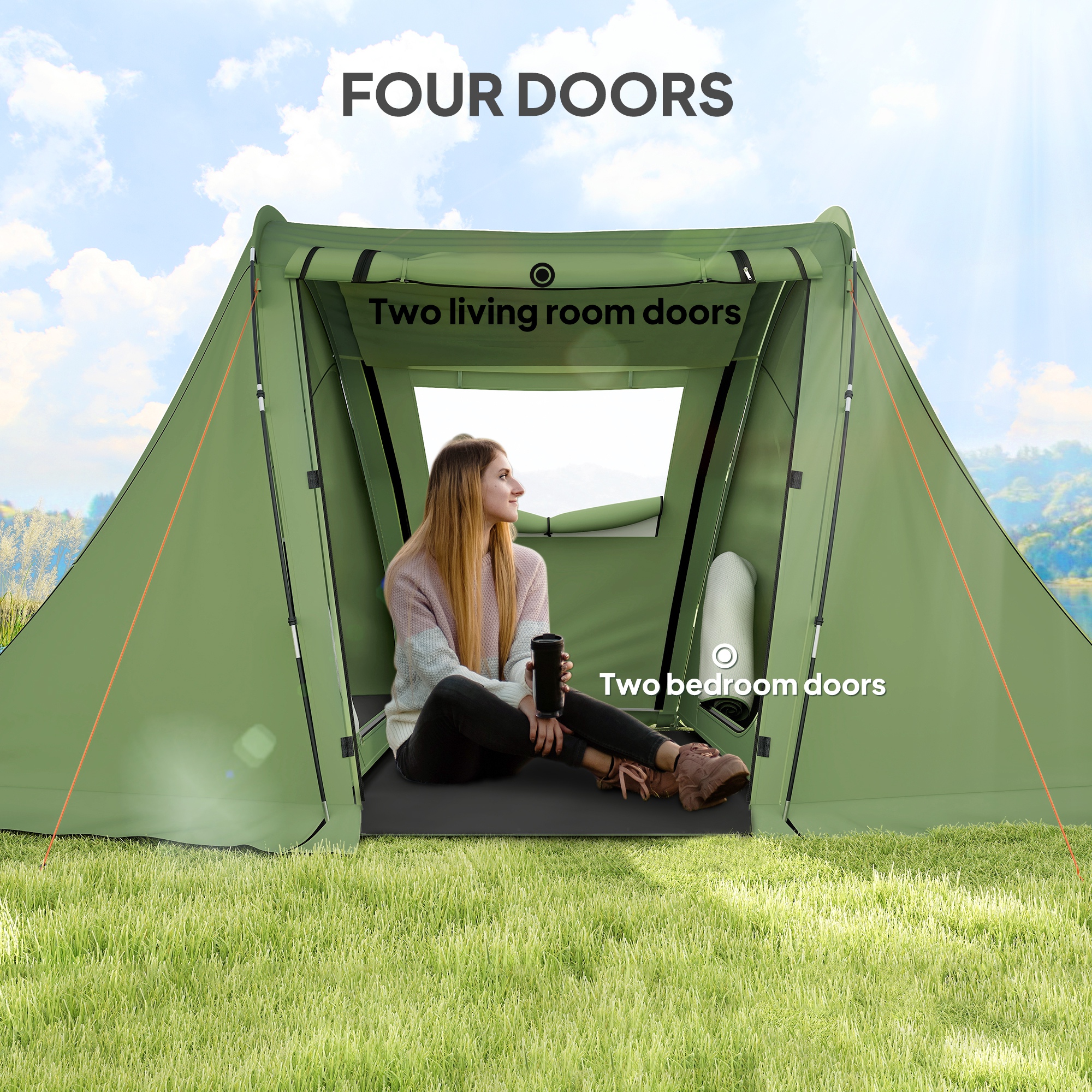 Discover the great outdoors with the Outsunny waterproof tent, your home away from home! This spacious 2 bedroom tent accommodates 2-3 sleepers and a 4-6 person seating area for family and friends. Enjoy the robust 3000mm waterproof outer layer and sewn-in groundsheet that keep moisture at bay, ensuring a dry and comfy retreat. Great for backpacking and hiking adventures!