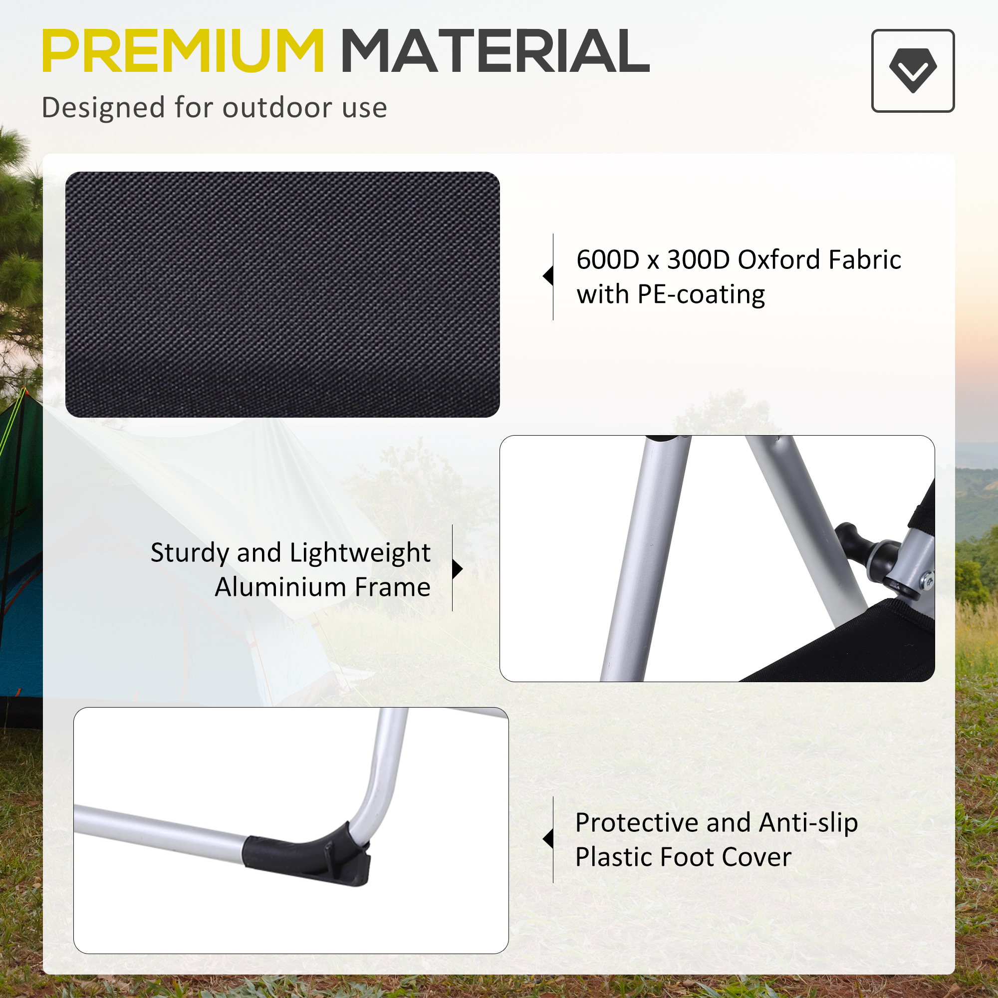 - Materials: Aluminium, Oxford, Sponge, Metal