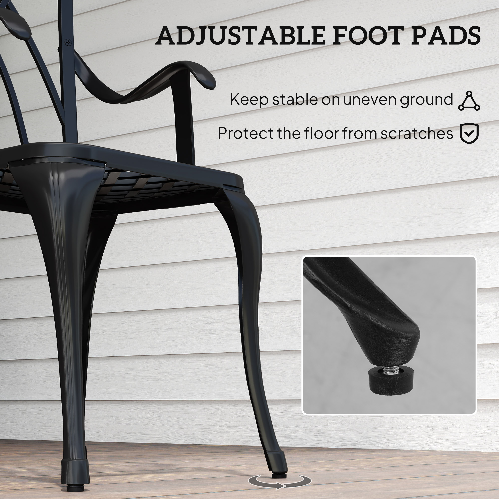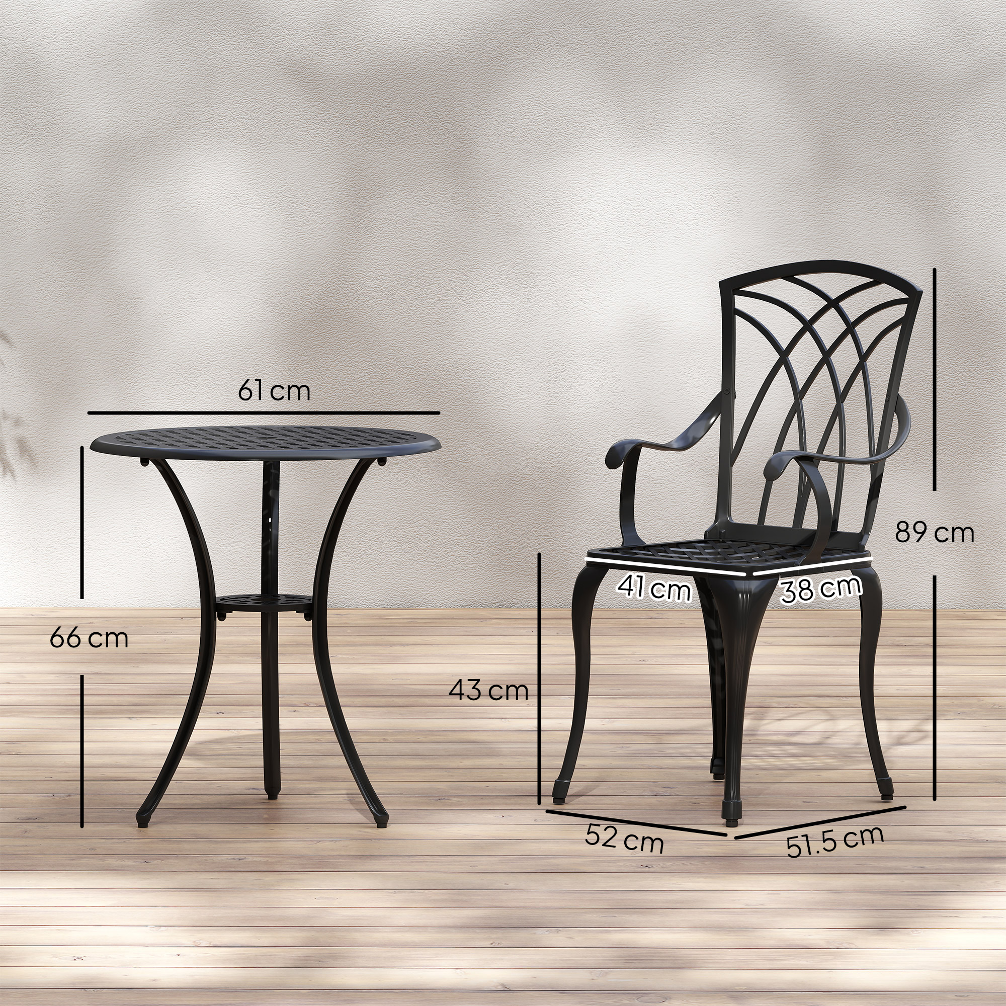 This three-piece outdoor garden furniture set from Outsunny will give you the optimal spot to dine and relax. It's formed of two chairs and a matching table, with cast aluminium forming the frame of all pieces to ensure they are robust and tough. Round in shape, the table features a middle hole to keep a sun parasol securely in place, with the back of the chairs showcasing a cut-out design for an attractive finish. Our outdoor table and chairs are great for flats and apartments with balconies.