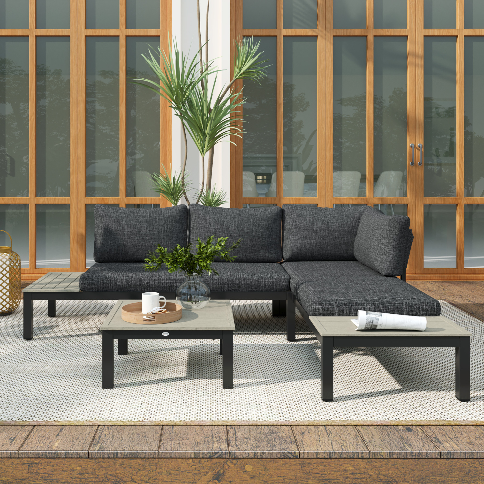 Enjoy the Summer sun like never before with this aluminium garden furniture sets from Outsunny. The garden set includes a two-seater sofa, a chaise lounge and a matching table to seat up to three people with ease – great for enjoying the outdoors with family and friends. The aluminium frame of the metal garden furniture set is strong. Small end tables on the sofas complete each piece, with a matching table included for extra surface space – meaning you won’t have to move a muscle once sat down.