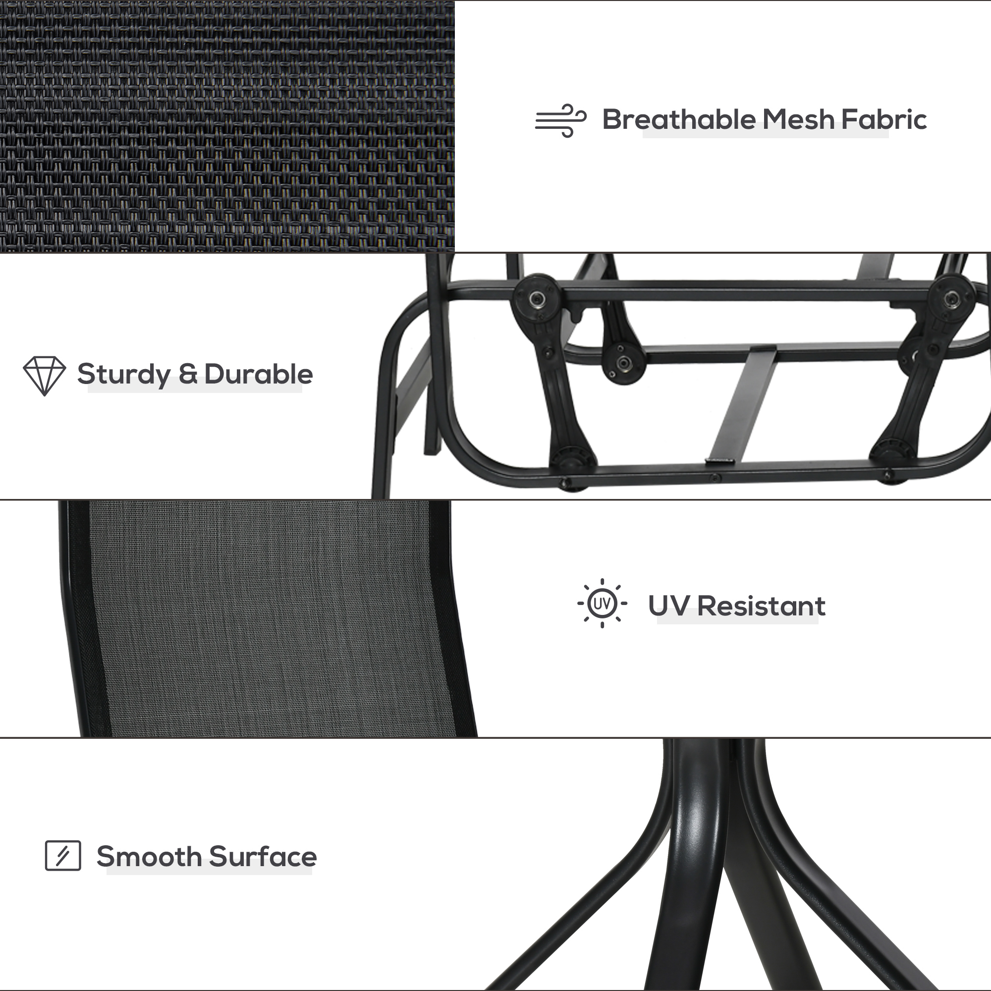 This three-piece swinging chair set, from Outsunny, will keep you relaxed in your outdoor areas this season and beyond. Both the chair and table frames are made from steel for strength; the chairs are fitted on a rocking base for the smooth movement, armrests and a high back for support and fabric seats back panels to hold your body evenly. Set complete with safe tempered glass on the table.