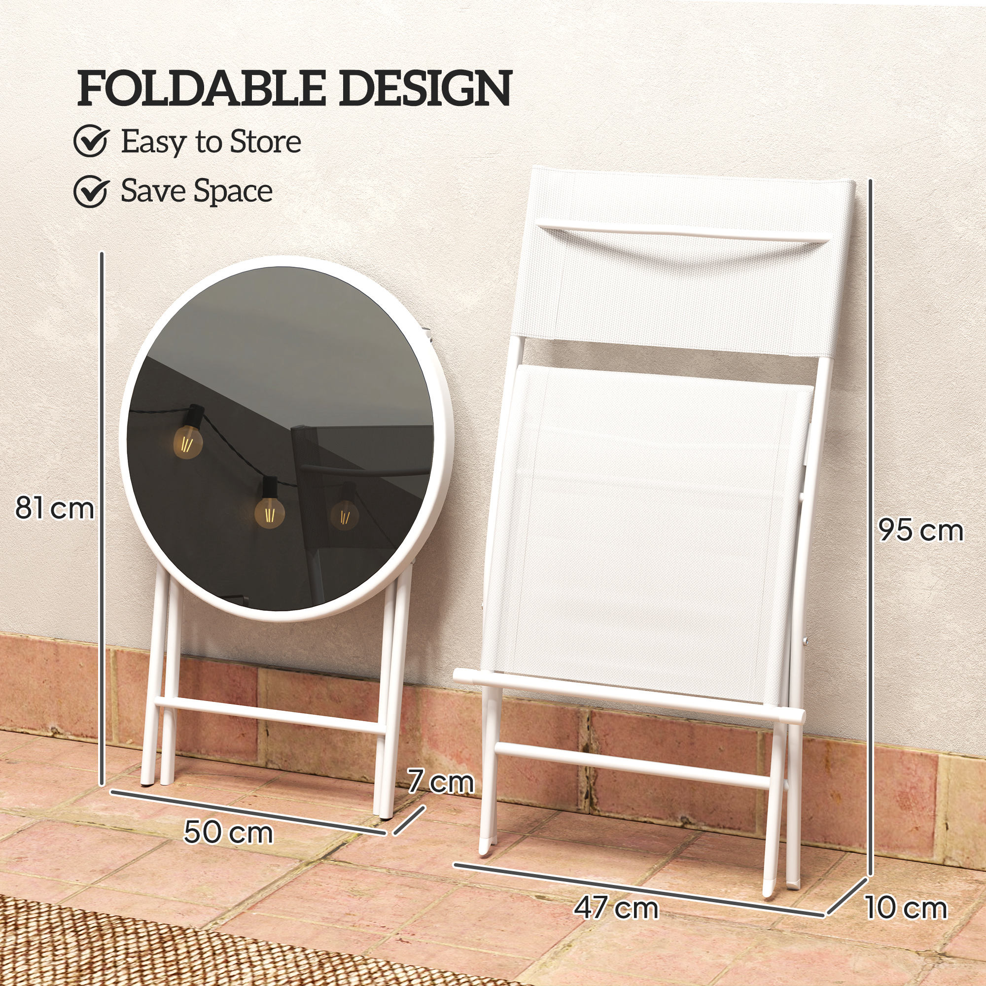 Discover the charm of the Outsunny Outdoor Bistro Set, a delightful addition to any garden or patio. This three-piece patio set, including two chairs and a table, folds away for effortless storage. Crafted with a steel frame and breathable mesh fabric, it ensures comfort and style with its sleek tempered glass tabletop. Suitable for any garden, balcony setting.