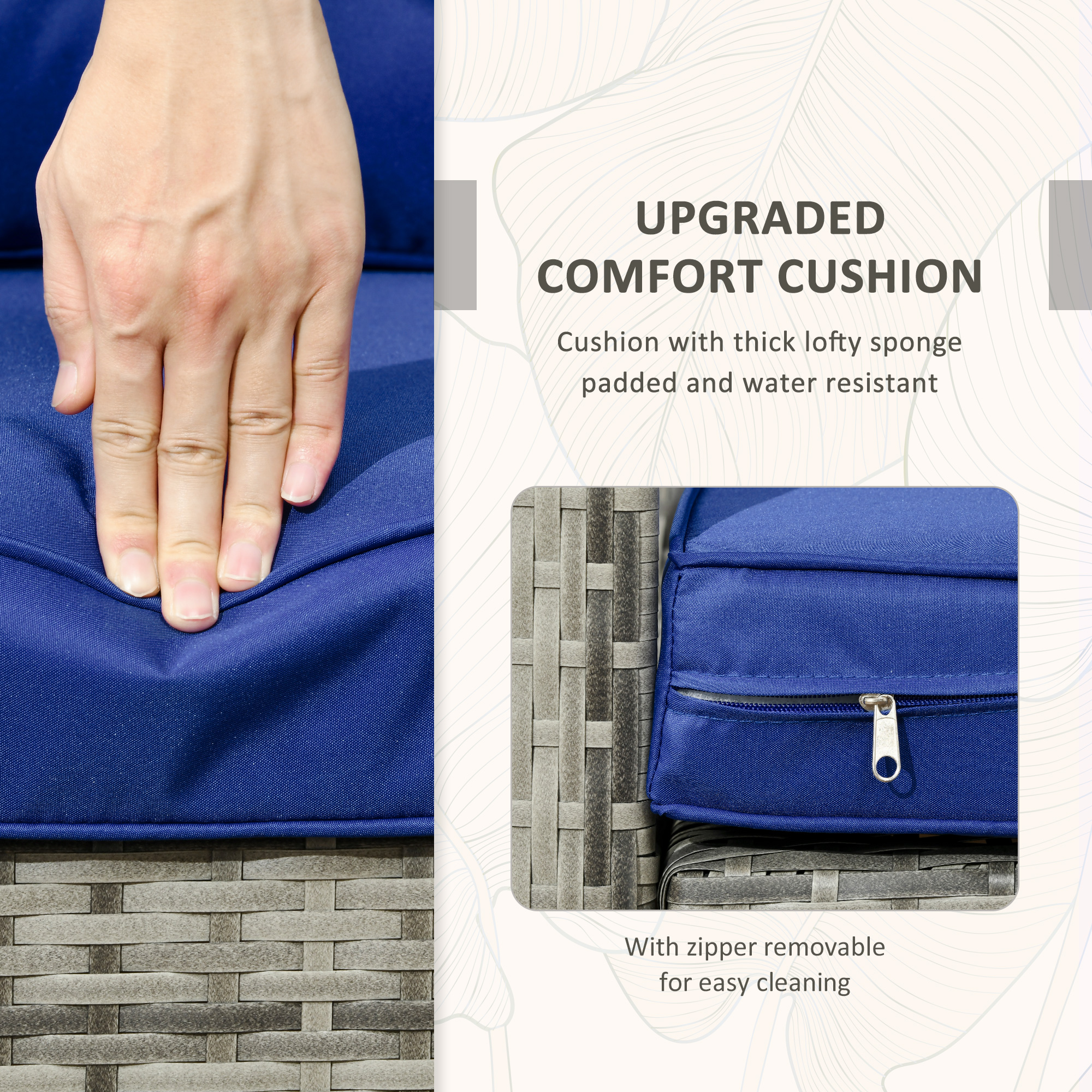 - Colour: Mixed Grey Rattan, Blue Cushion