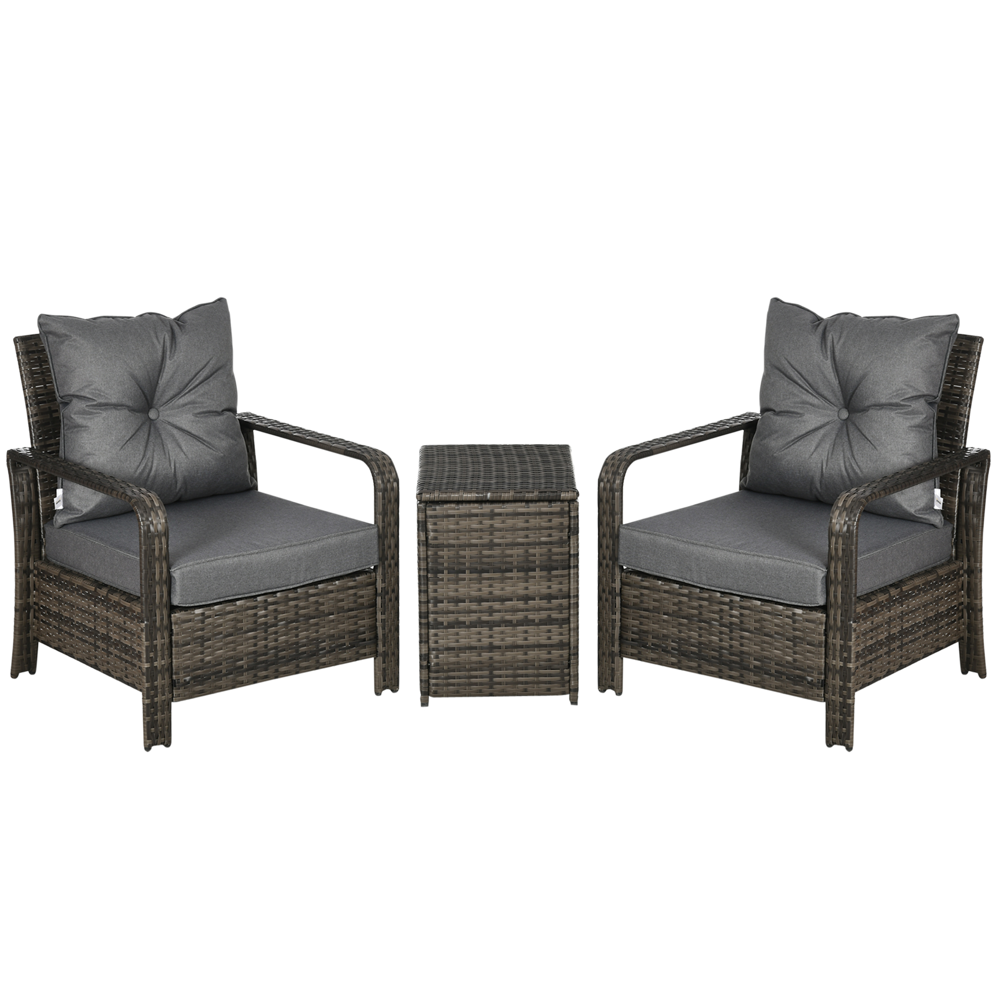 Do those lazy afternoons in the sun the right way – choose this outdoor seating set from Outsunny. Formed of three pieces – two large armchairs and a matching table, it's perfect for relaxing and catching up with a friend right by your side. Using steel for the base structure, each piece is wrapped in PE rattan, ensuring strength and protection against the mild elements whilst being easy to clean. Set to make you fall in love with the season ahead even more than ever before.
