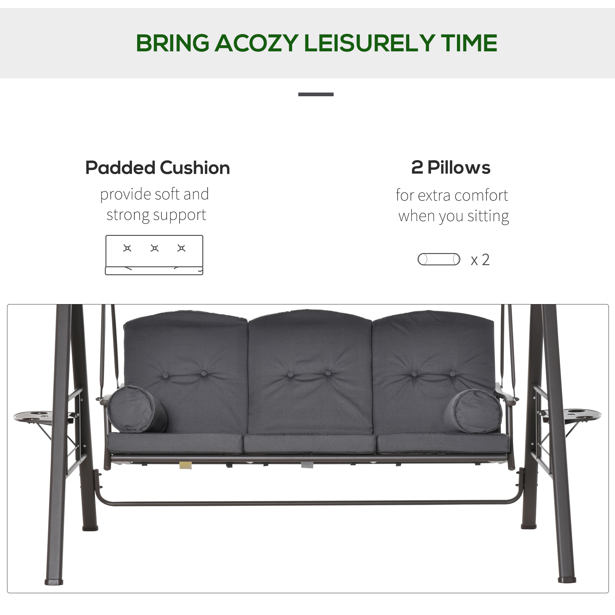 Indulge in the epitome of outdoor luxury with the Outsunny three-seater swing chair. As you bask in the gentle afternoon sun, this swing becomes the centerpiece of your garden, offering unparalleled comfort with its plush cushions and adjustable canopy. Its elegant design, featuring an arc-shaped canopy and floral seat back, enhancing your garden's allure. With convenient side trays for refreshments, this swing transforms your outdoor space into a haven of relaxation and style.