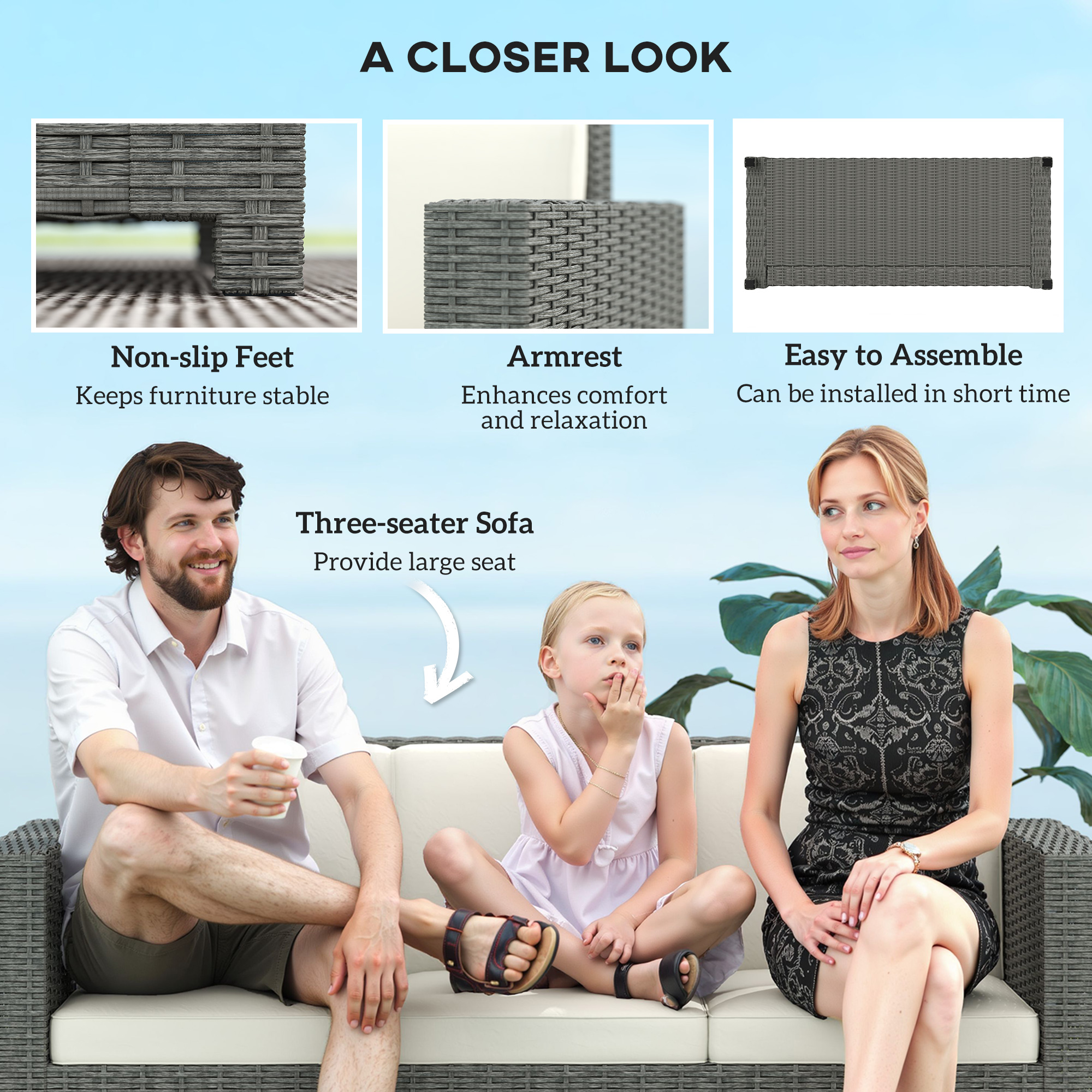 Brighten your garden with the Outsunny 3-seater garden sofa from Outsunny. Made of steel frame to prevent rust and damage outdoors, wrapped in rattan for easy cleaning and is a mainstay in your garden furniture. Come with 10cm thick padded and plush cushions, as well as being water-resistant and having washable covers, with a high back and armrests for plenty of support—a great way for three persons to sit back and relax in the sun.
