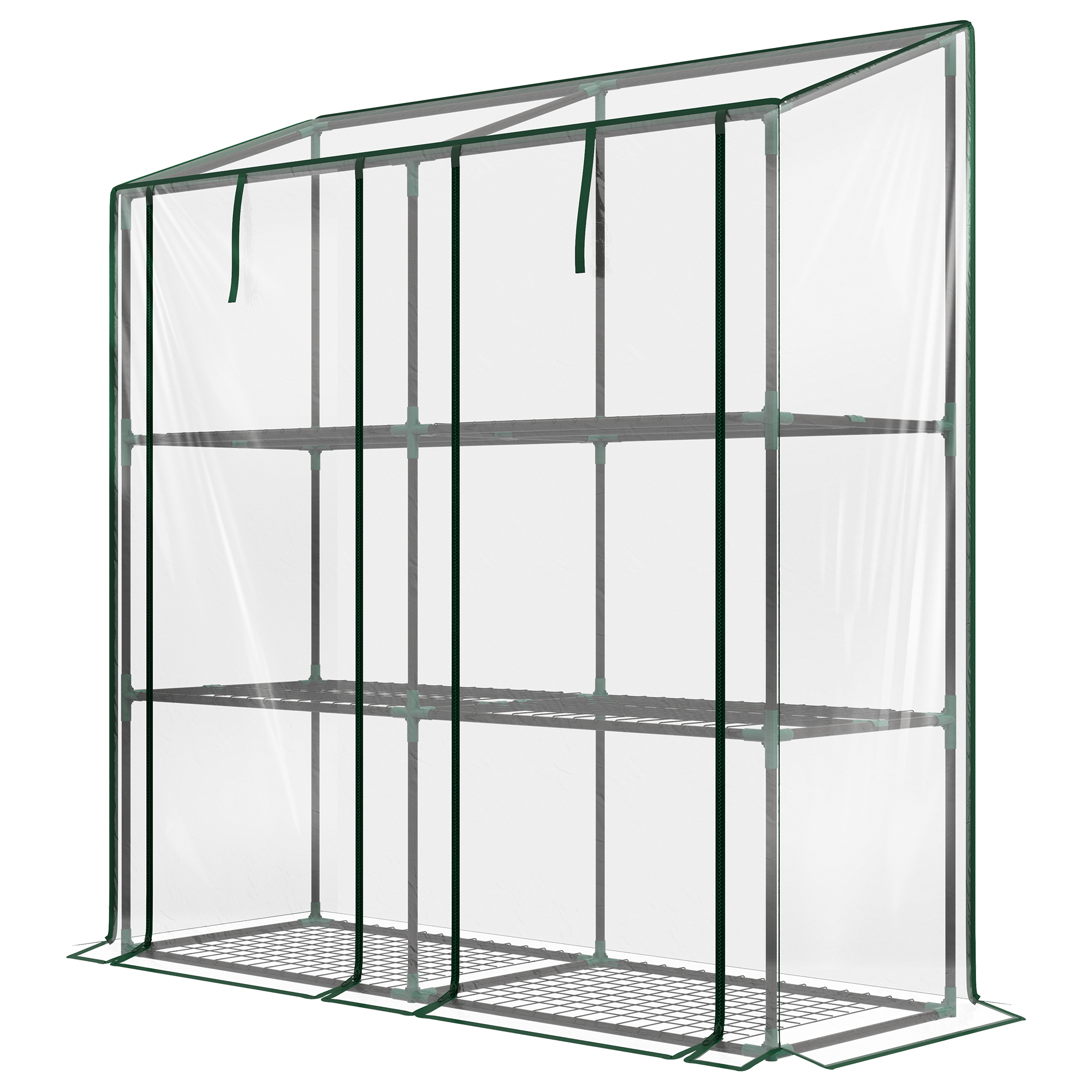 This Outsunny three-tier plastic greenhouse provides plenty of space for plants, flowers and more. The plastic cover protects plants inside from wind and rain, whilst allowing plenty of sunlight to pass through. Plus, the roll-up zipped doors allows easy access and provides fresh air inside whenever.