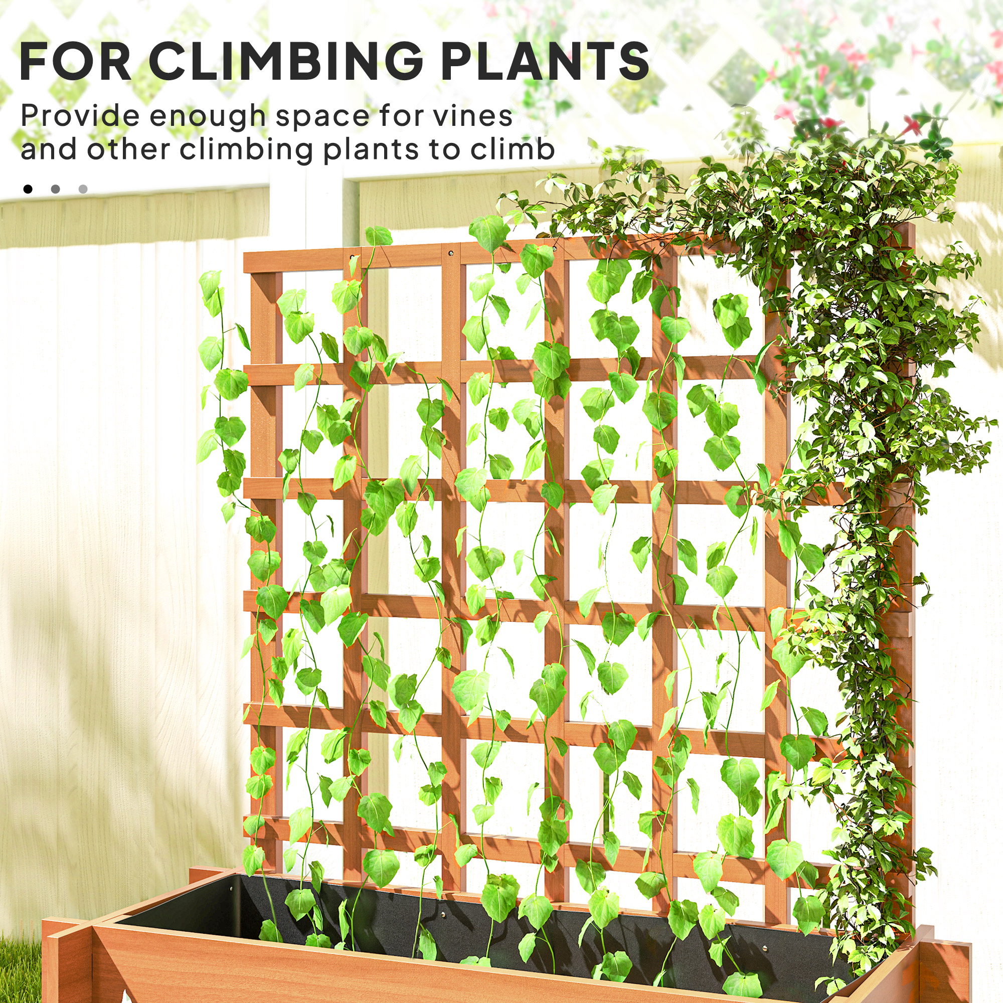 This Outsunny raised garden bed gives you so much. It comes with a back trellis for growing plants and vines, as well as three planter boxes - plenty of room to grow. A strong wooden structure, with a protective paint coating makes it suitable for outdoor use. Inner fabric bag to hold the soil in place. Get out and get growing with Outsunny.