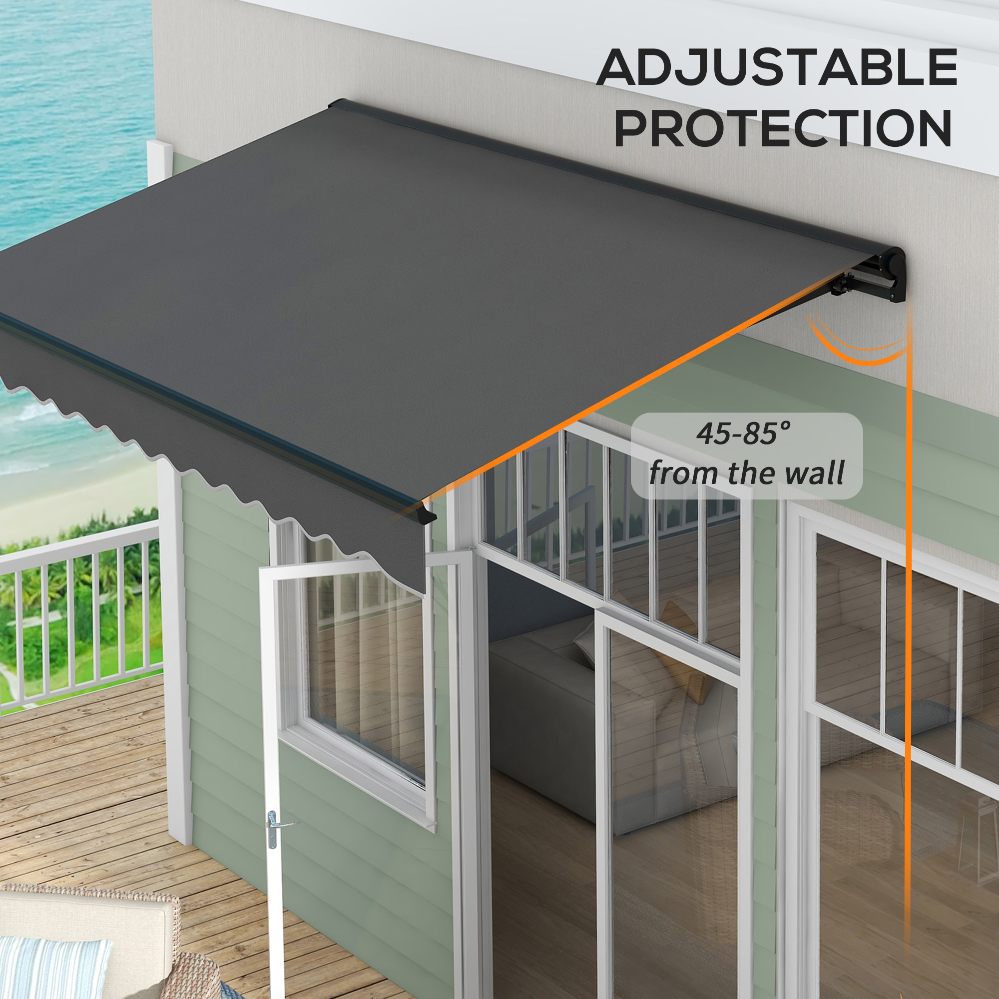 Provide cover for yourself outdoors instantly, with no fuss. Do it with this Outsunny retractable door awning. The frame is made from an aluminium and metal blend - a tough core. The 280g/m² canopy is PU coated to shelter against sun glare, UV rays and mild weather. Use the included mounting hardware; you can install this outdoor garden awning on a concrete, solid brick wall and even on a wooden fence, any door, balcony patio or window.