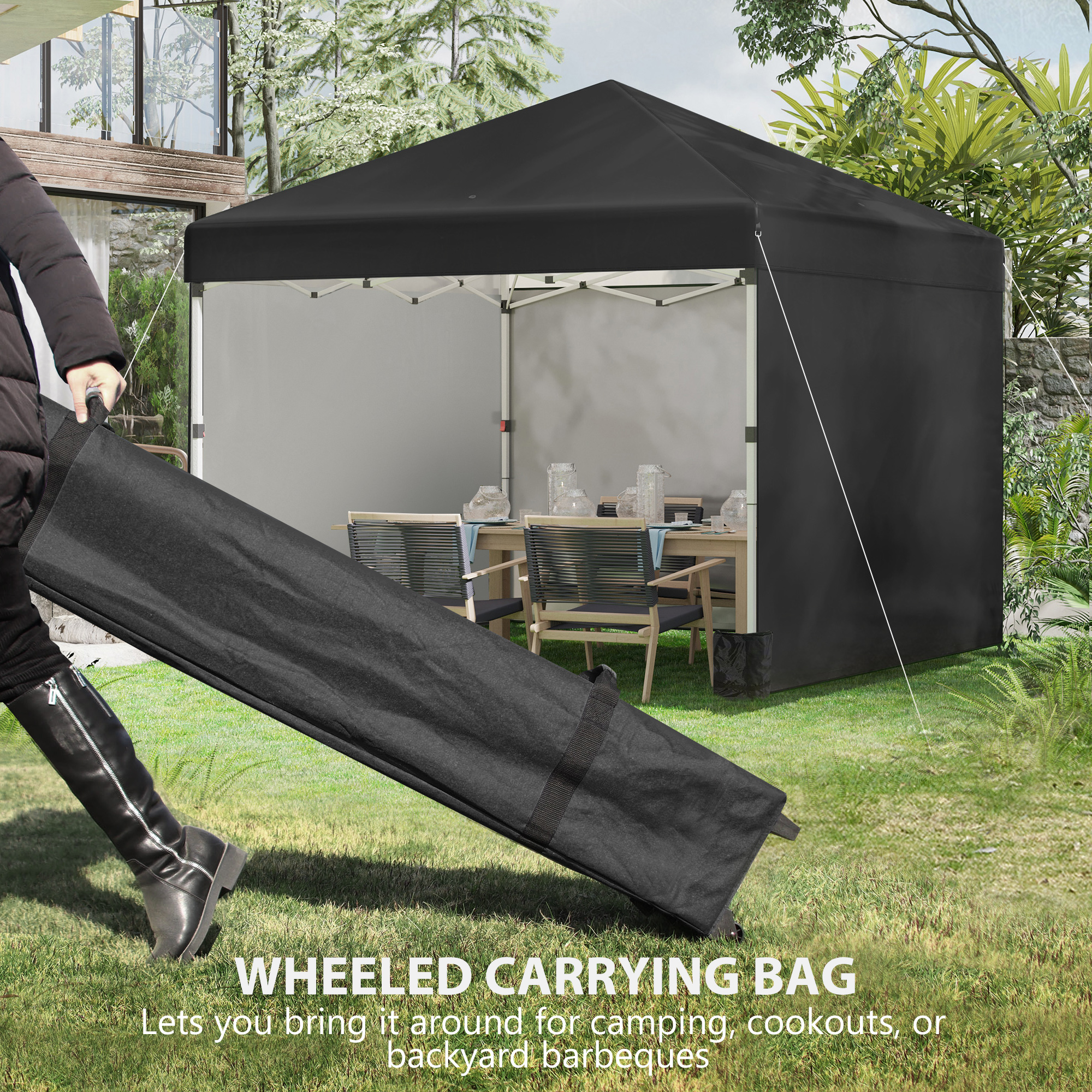 Transform your high-end outdoor events with the Outsunny 3x3 m pop-up gazebo, designed for the event planner. Its quick setup and takedown make it ideal for versatile use across various gatherings. The elegant design, featuring three walls, offers both privacy and a openness, perfectly complementing the luxurious ambiance of your events. With stakes, ropes, and sandbags, it remains stable in any weather. Effortlessly portable, it enhances your planning with ease and sophistication.