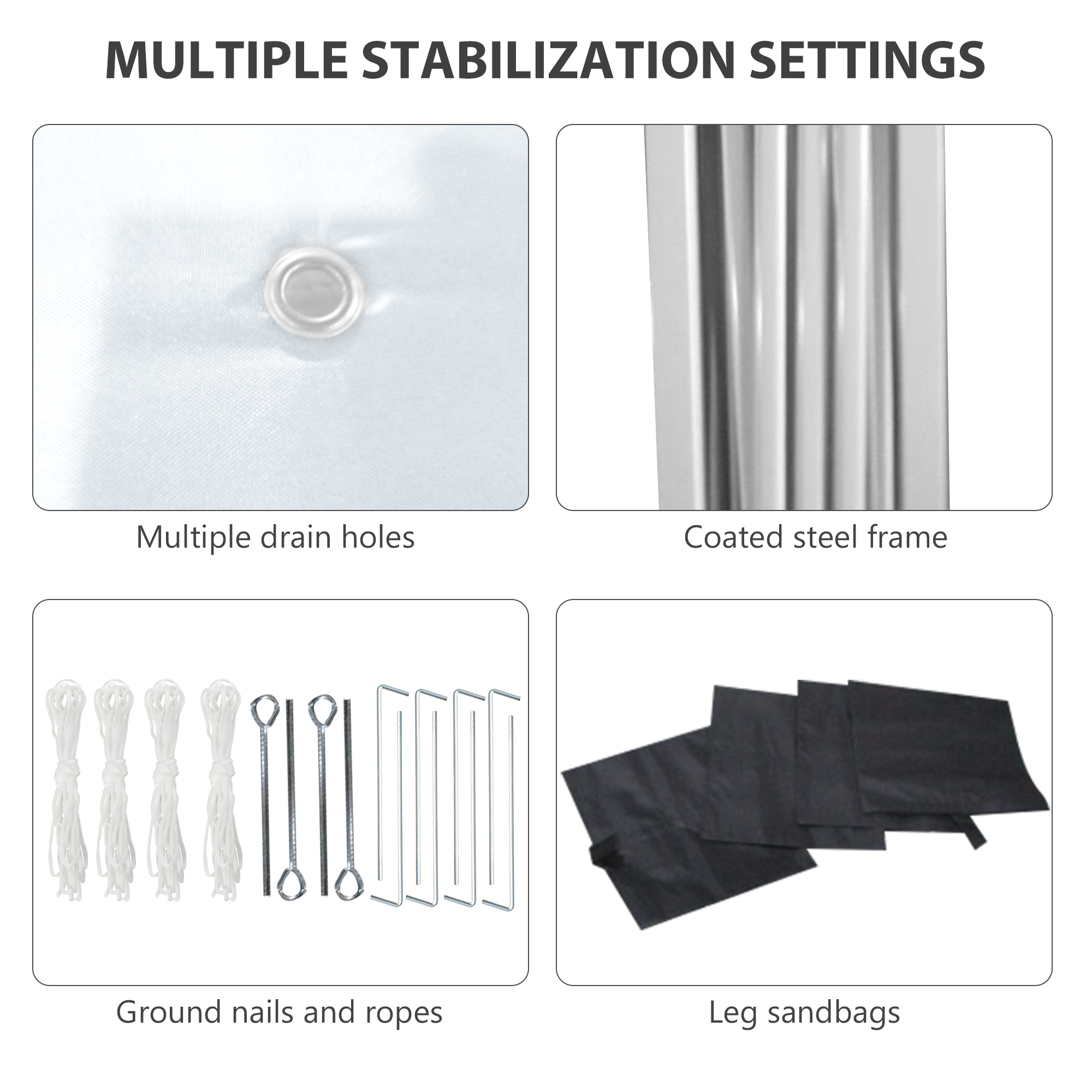 Indulge in the outdoor living with the Outsunny 3x3 m portable gazebo, designed for those who cherish outdoor activities. On a sunlit weekend, transform your garden into a sophisticated venue for a barbecue party. The gazebo's sleek white design seamlessly complements any upscale garden decor, while its effortless setup allows you to adapt to changing weather. With adjustable heights and stabilizing accessories, it offers both elegance and practicality.