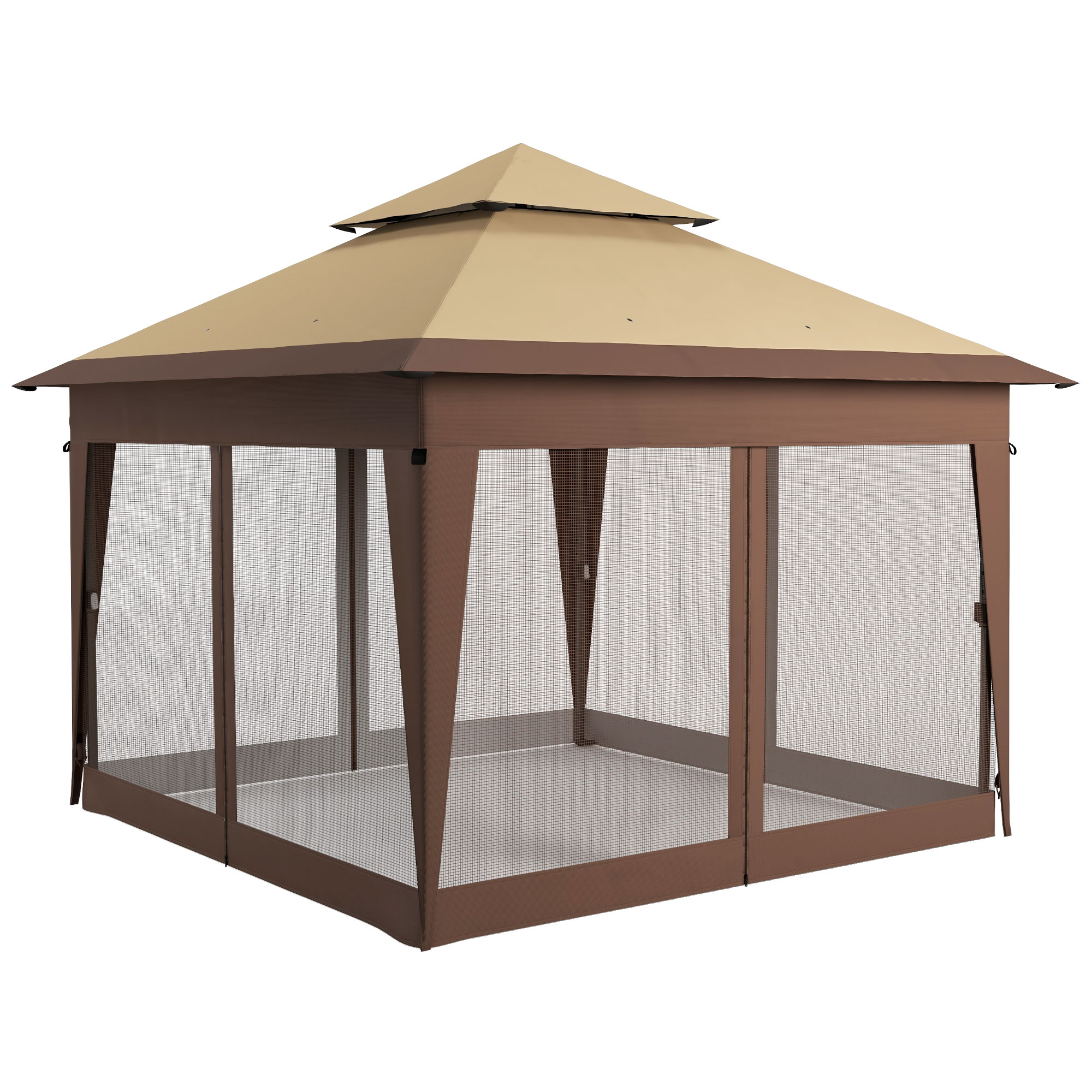 - Double roof design enhances air circulation and wind resistance