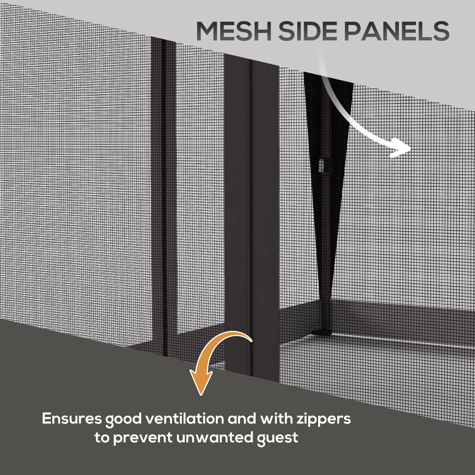 - Mesh curtains with zip fastenings to create open/closed space