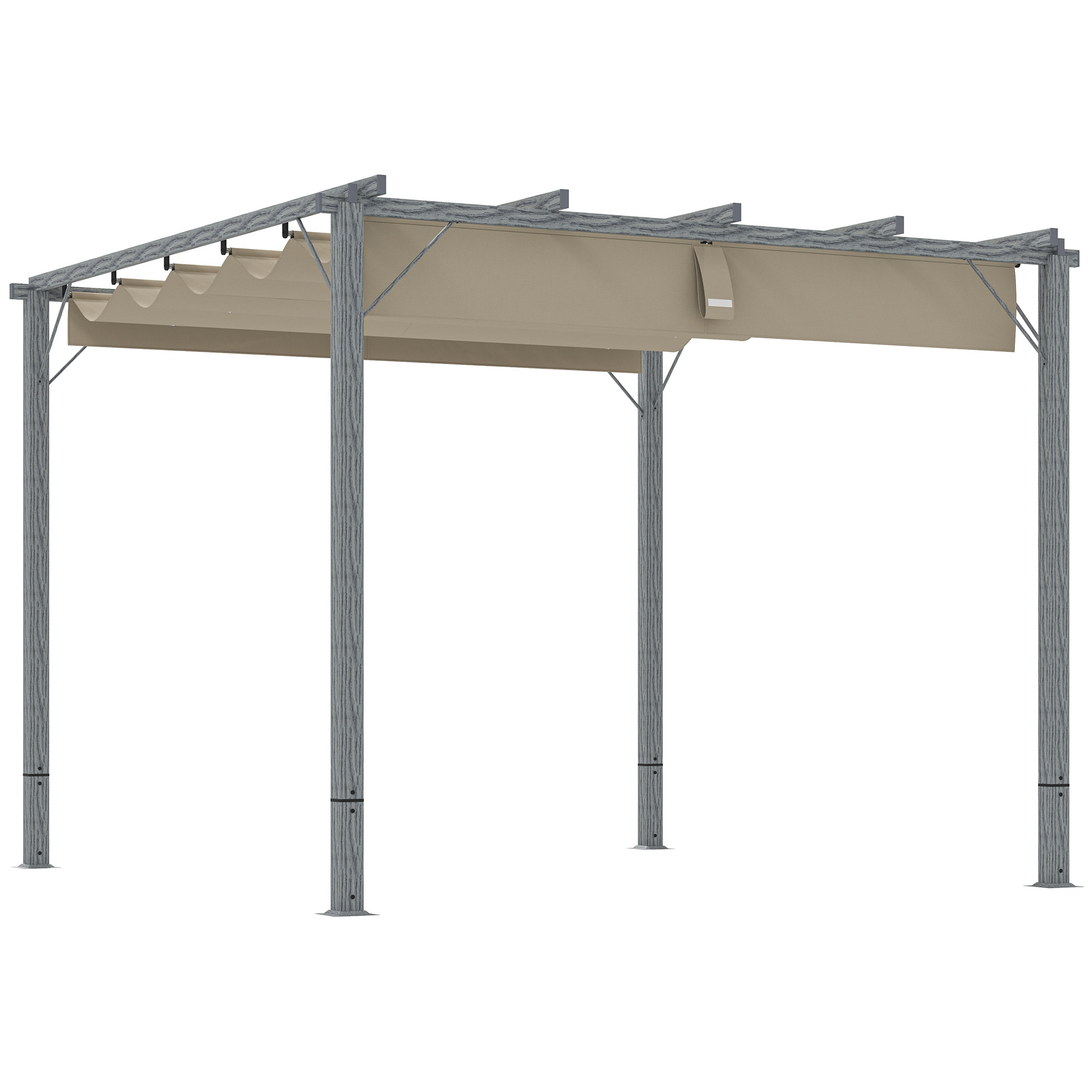 A beautiful spot to relax and gather outdoors, with this Outsunny 3 x 3 m pergola. Thanks to the retractable canopy roof, it's easy to adjust the canopy as you desire - enjoy the sunshine or relax in the shade. The aluminium structure is strong, finished in a wood-effect for an attractive, natural look. Ground stakes and expansion screws included to keep it attached to the floor.