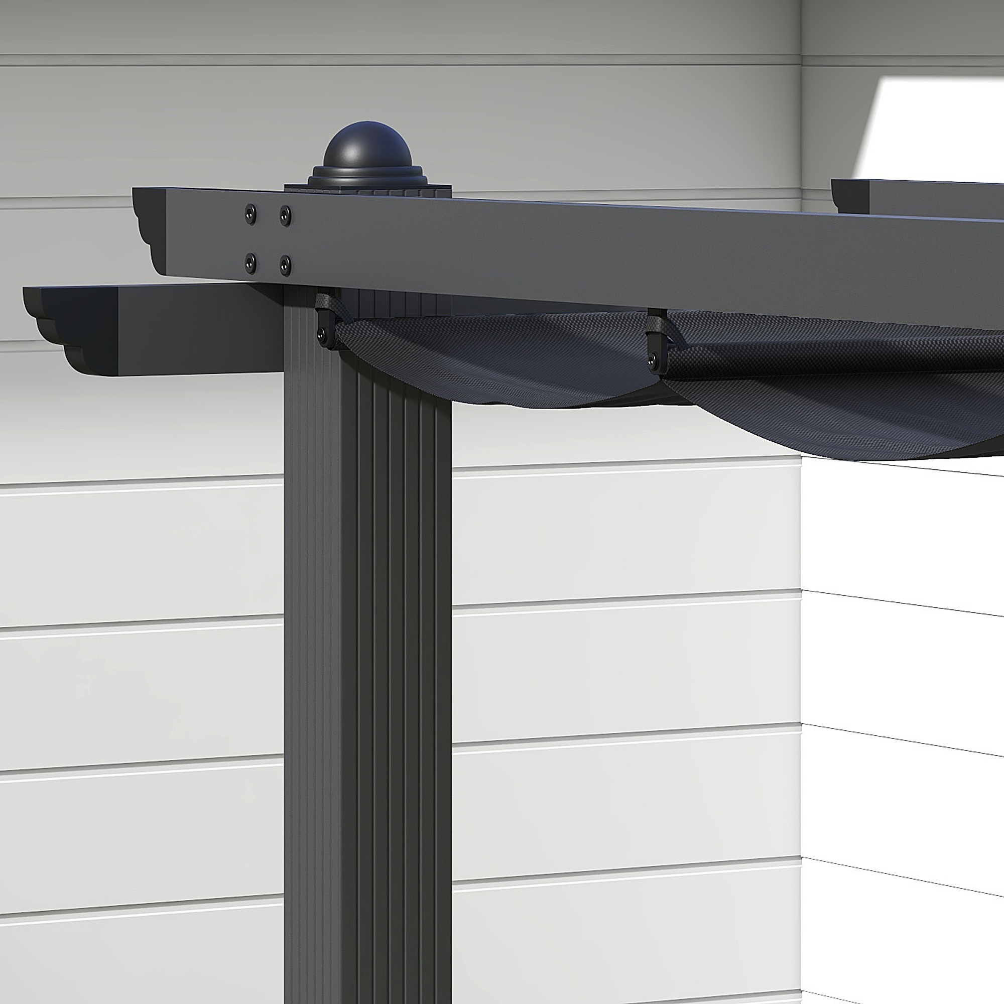 This Outsunny retractable pergola allows you to be in control - enjoy the sunshine or relax in the shade. Move the fabric roof panel to a position of your choice, letting you be fully in control. The aluminium structure is strong, with ground stakes and expansion screws included to attach to the floor. Grommet holes on the fabric for easy water drainage. Enjoy your outdoor space more than ever before.
