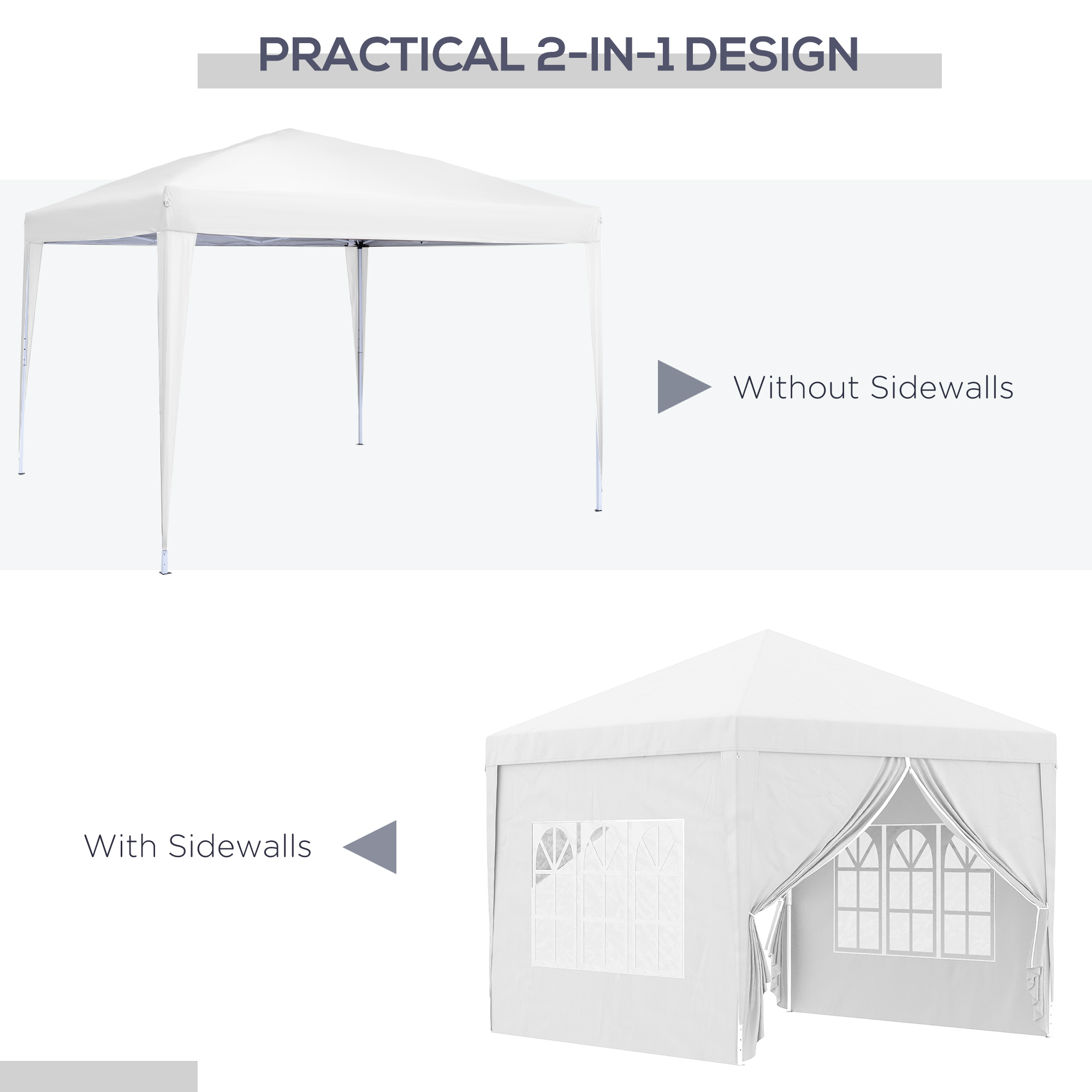 - 4 side walls, 2 pane style and 2 zipped